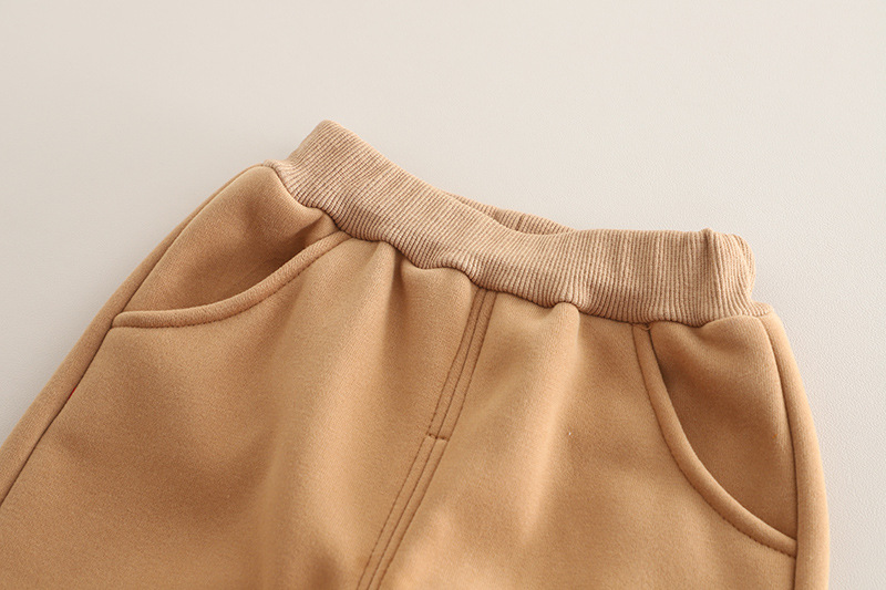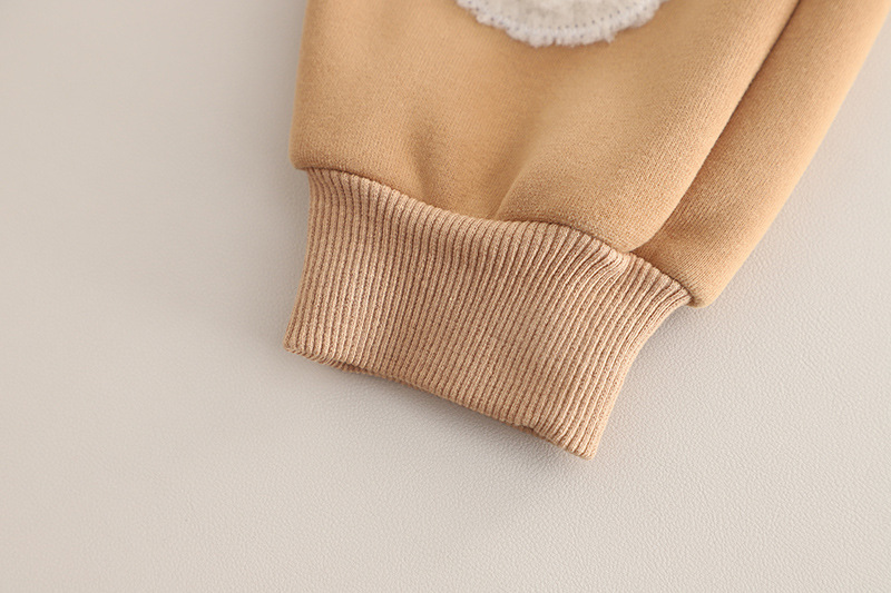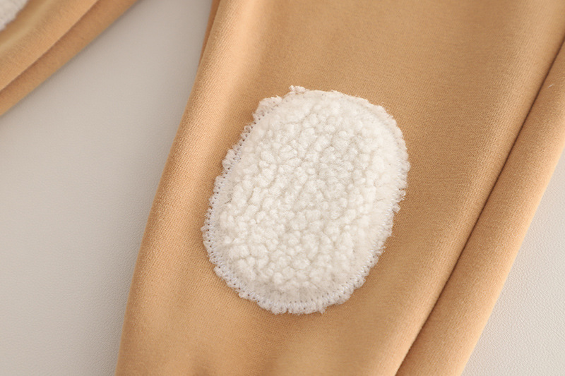 -Панталон, съчетан в тон с горната част, с еластична талия за удобство + плюшени кръпки на коленете за закачлив завършек.