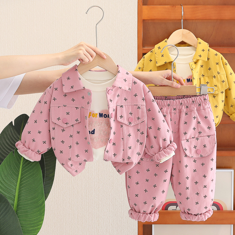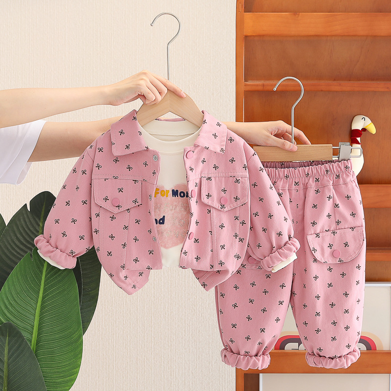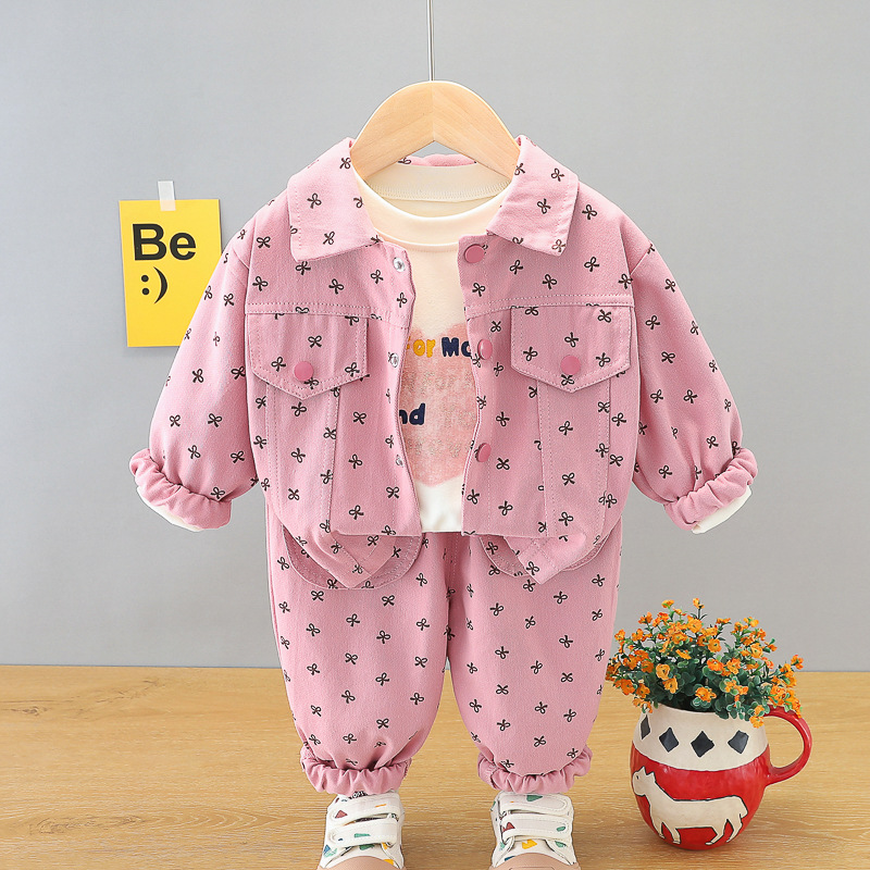 Деним Комплект с Класическа Яка и Ефектен Десен Be Happy Pink – 3 части