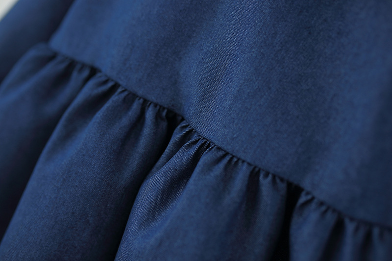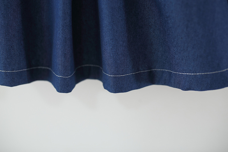 🧸 Моделът е изработен от памучен деним шамбре с А-силует и леко разкроена долна част, която създава ефирност и свобода на движение.