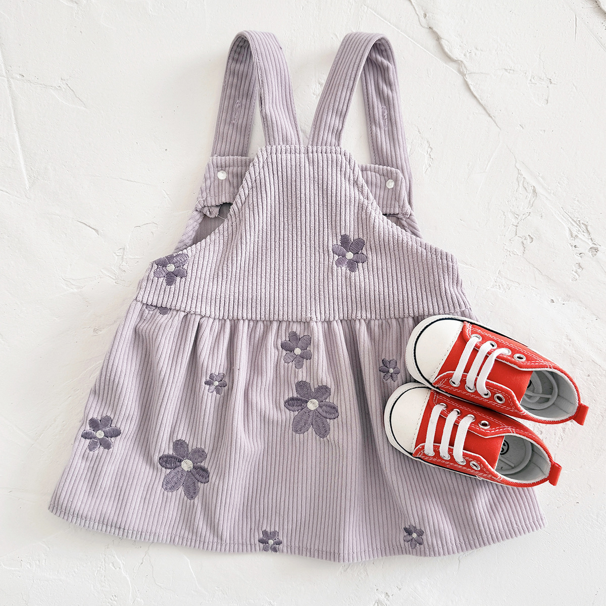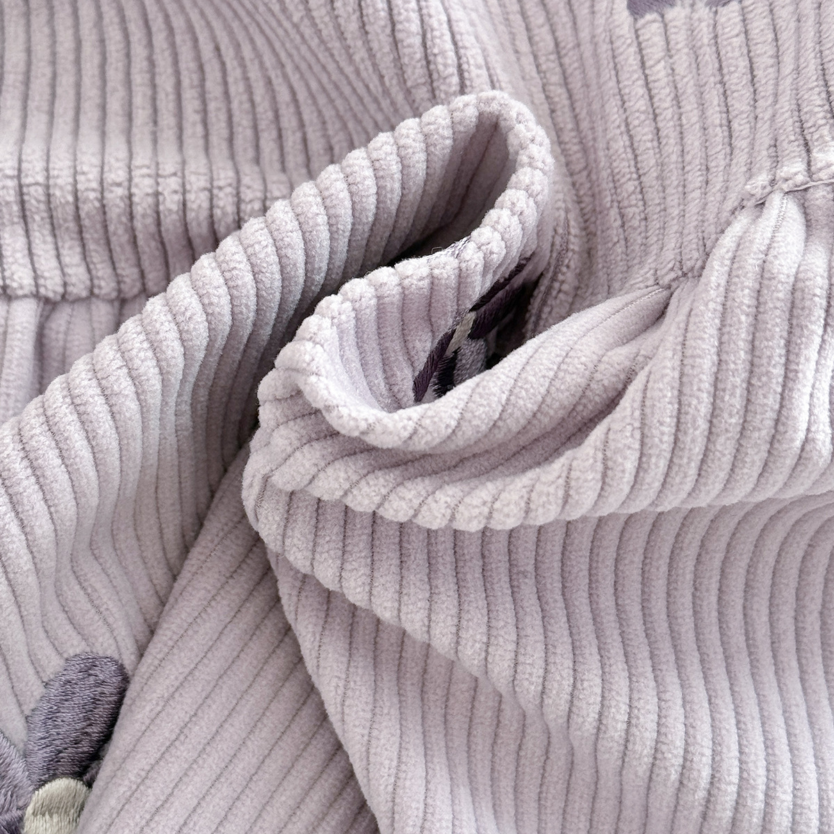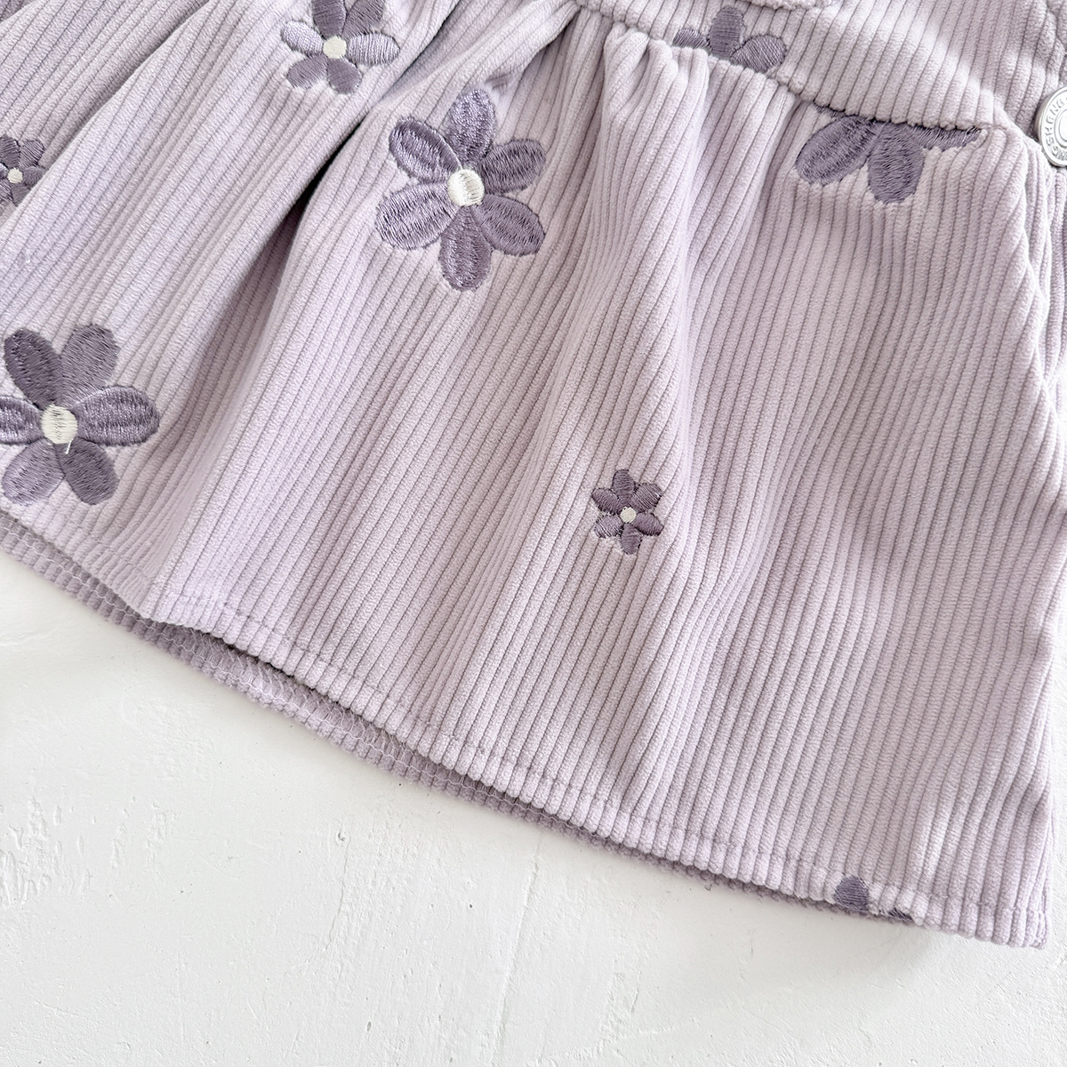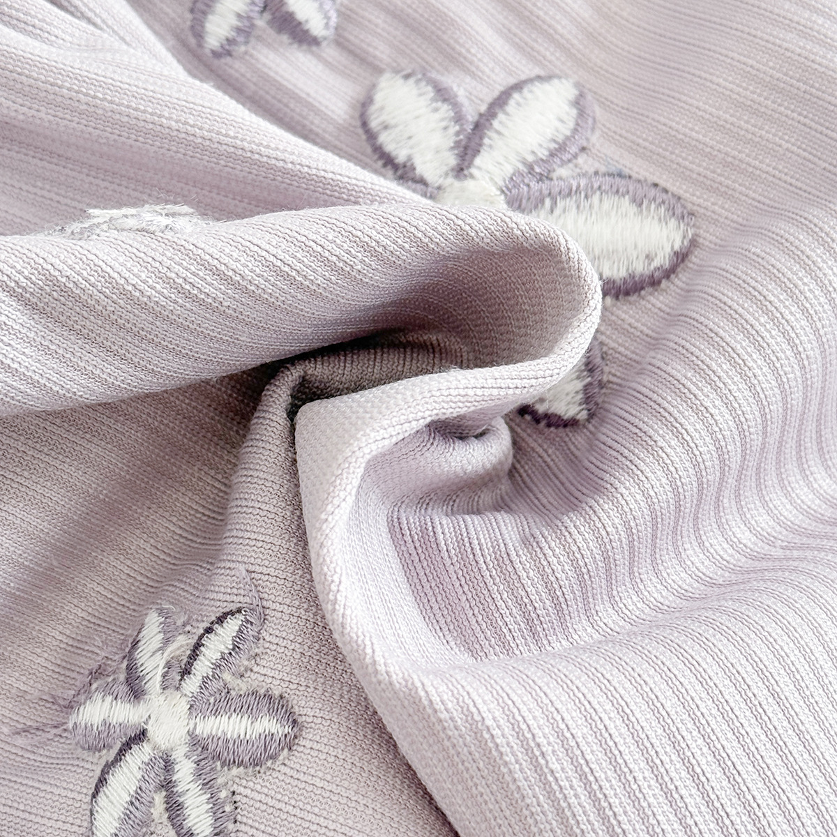 – Разпръснати лилави флорални бродерии по цялата предна част – за игрив, романтичен акцент.