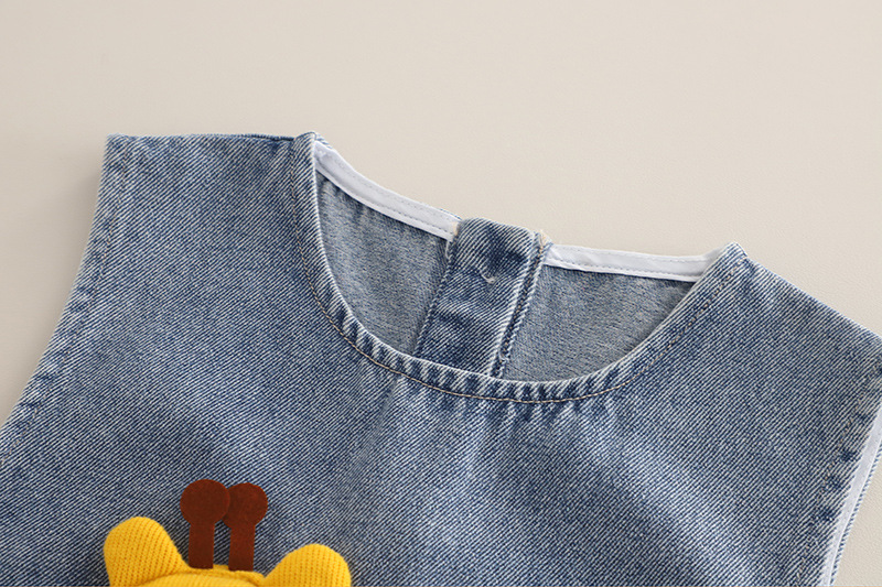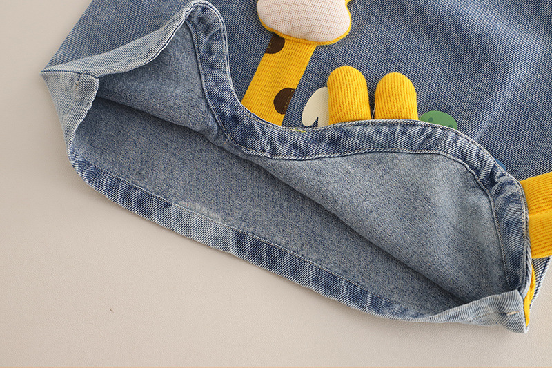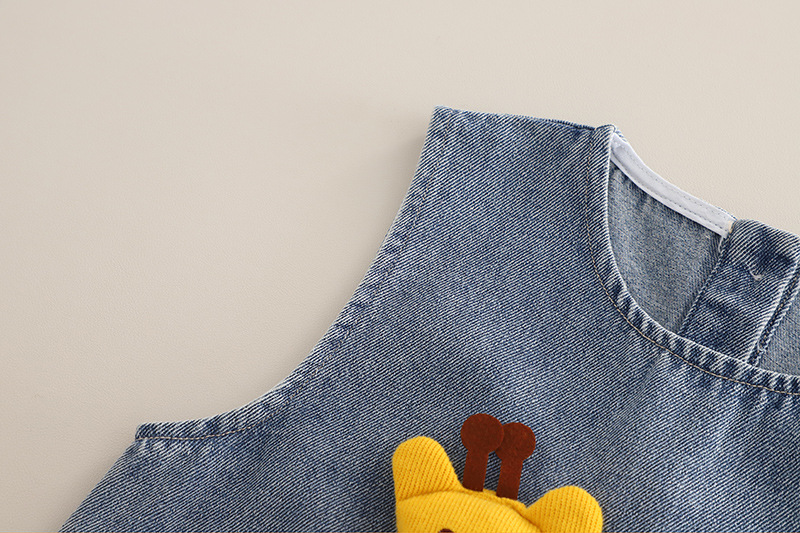 – Дънков елек без ръкави с ефектна 3D апликация на жираф и цветен надпис „NICE!“ отпред. Изработен от мек деним, подходящ за преходния есенно-зимен сезон.