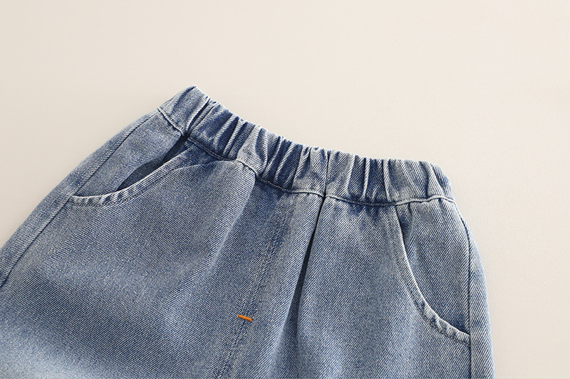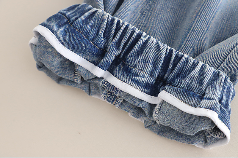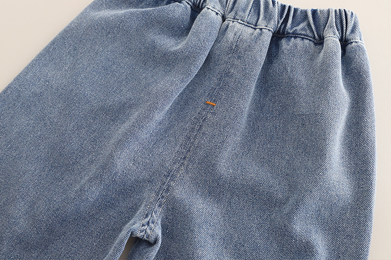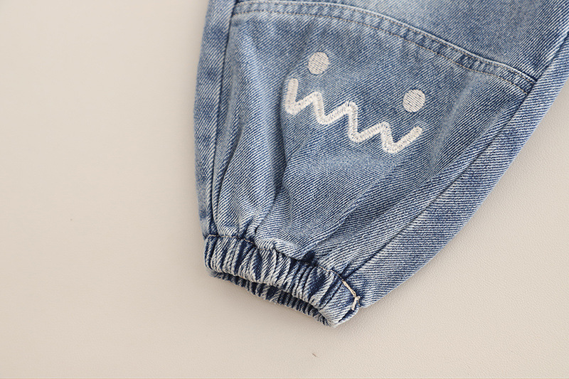 – Дънков панталон със свободна кройка, с ластик в талията и глезените за удобство при движение, допълнен със забавни бродерии по крачолите.