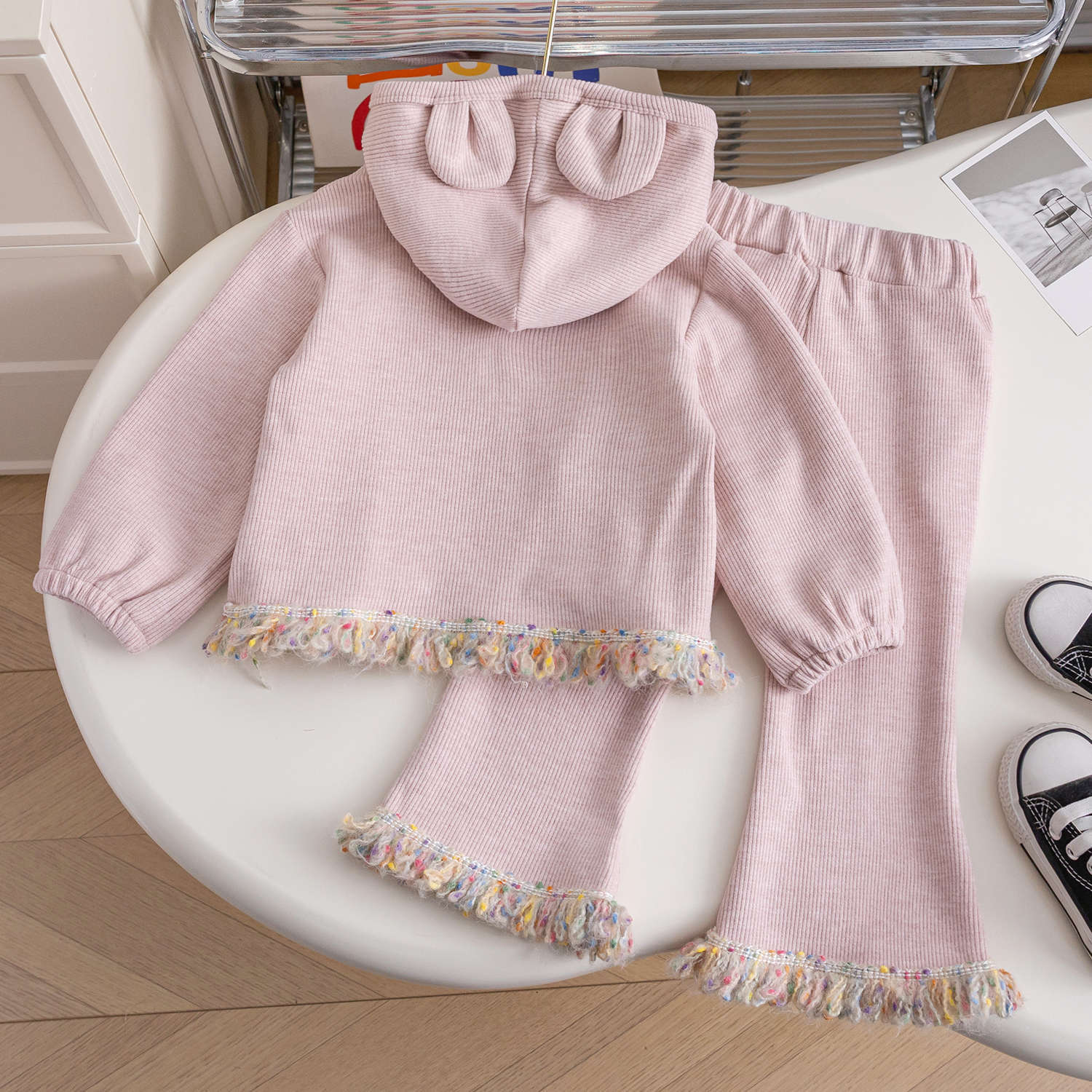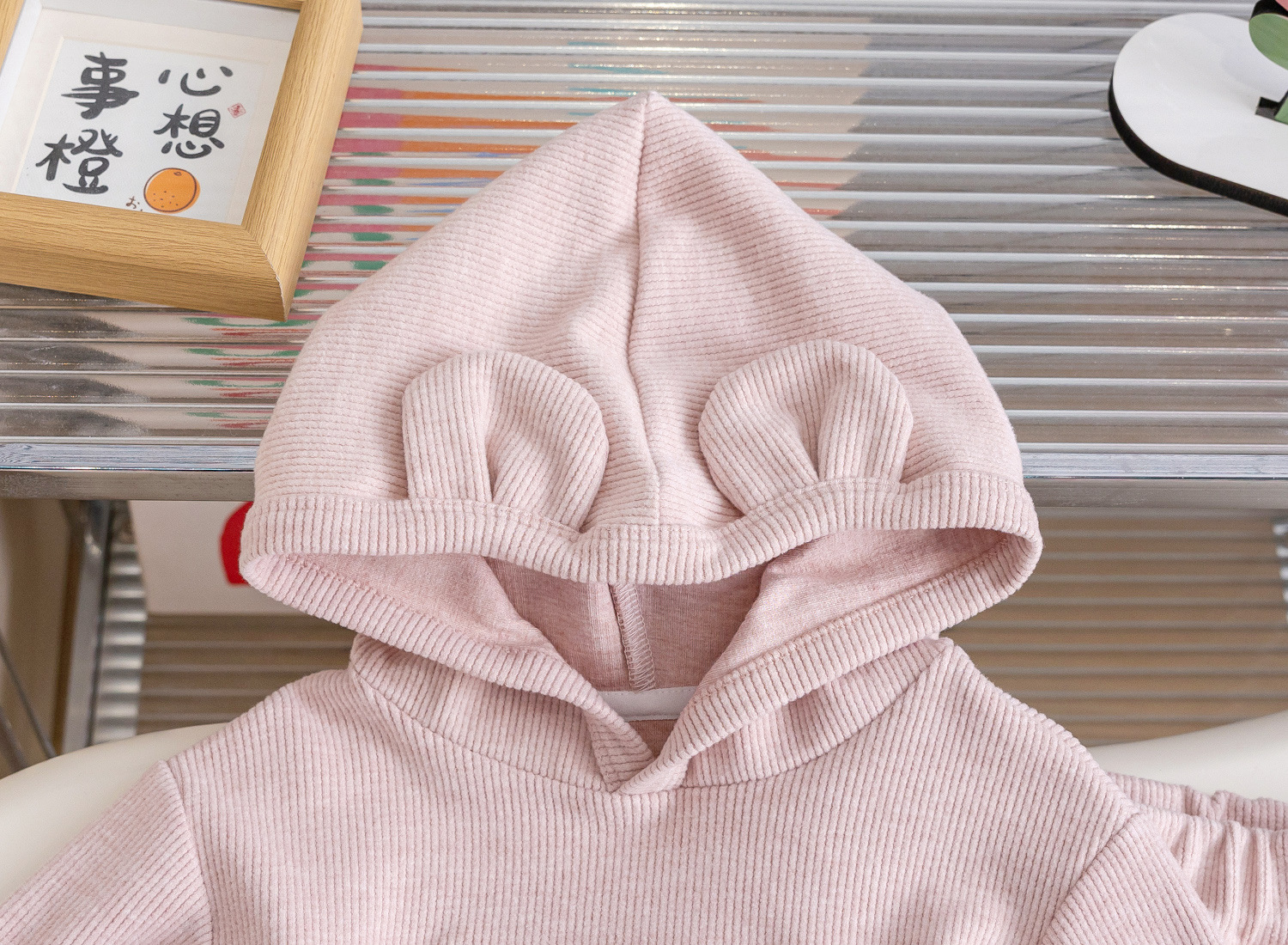 Екстравагантен Комплект от Блузка/Суитшърт с Качулка, 3Д Ушички и Панталон Candy Bunny – 2 части