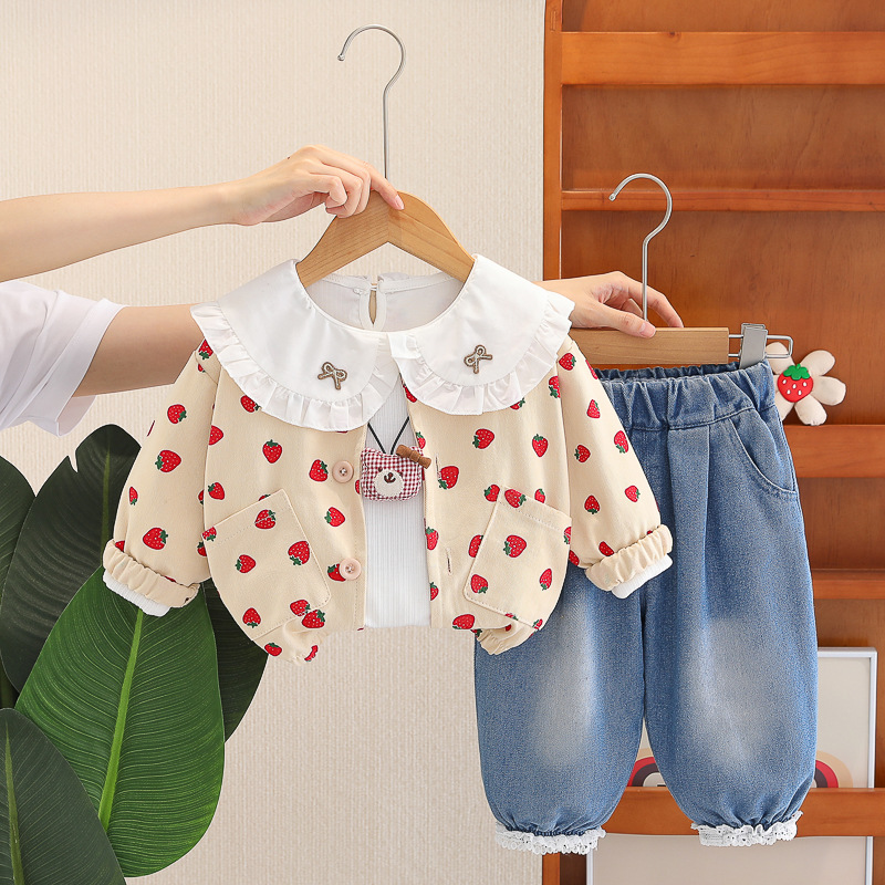 • Комлект от Яке, Риза с Питър Пан Яка и Деним Панталон My Strawberry - 3 части