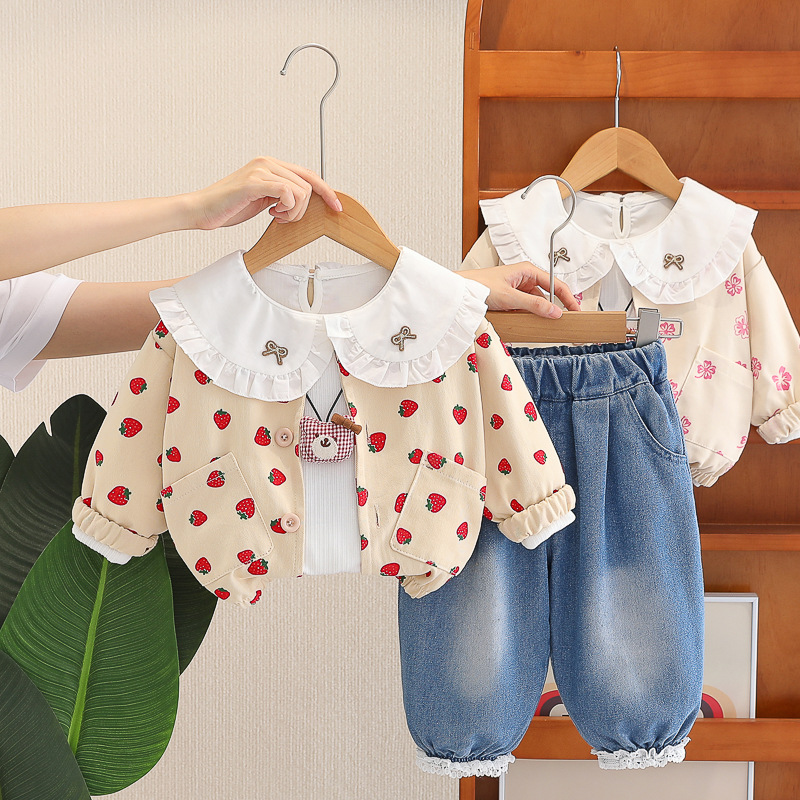 Комлект от Яке, Риза с Питър Пан Яка и Деним Панталон My Strawberry – 3 части