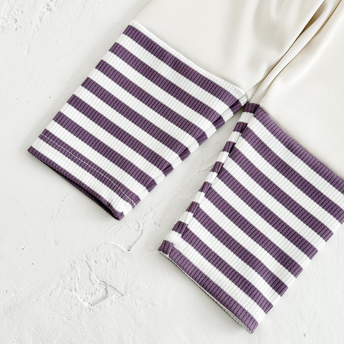 – Клин от мек еластичен плат в слонова кост с висока талия. Долен панел с лилаво-бели райета от рипс за свеж, модерен детайл.