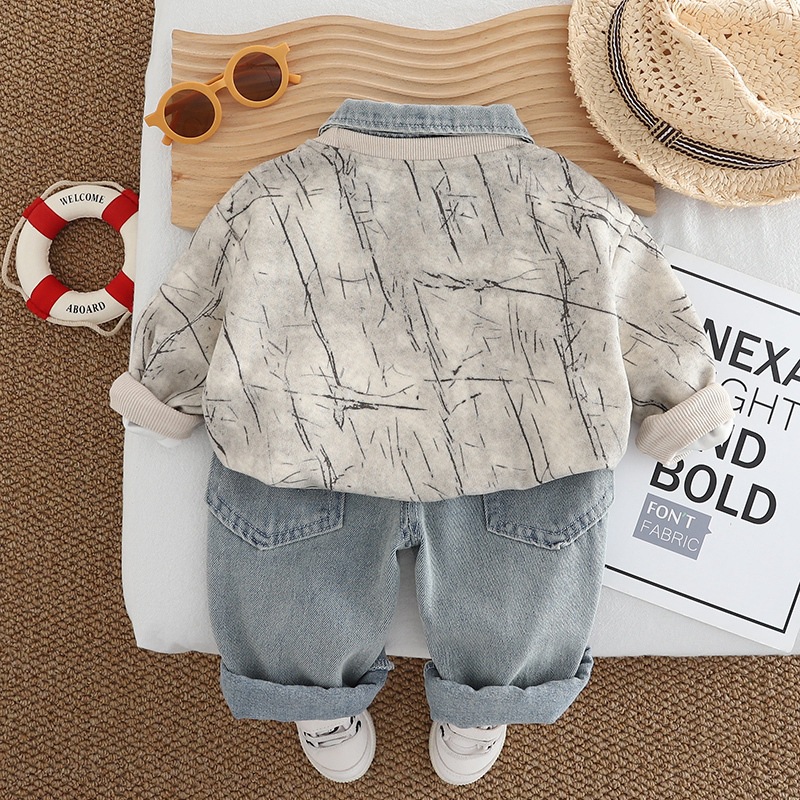 -Дънков панталон с избелен ефект, изработен от мек деним. Кройката е свободна, крачолите са леко навити, а дизайнът съчетава непринуден стил с удобство за ежедневни игри.