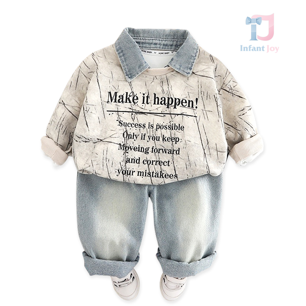 Комплект от Блузка/Суитшърт с Подвижна Яка и Деним Панталон Make It Happen - 3 части