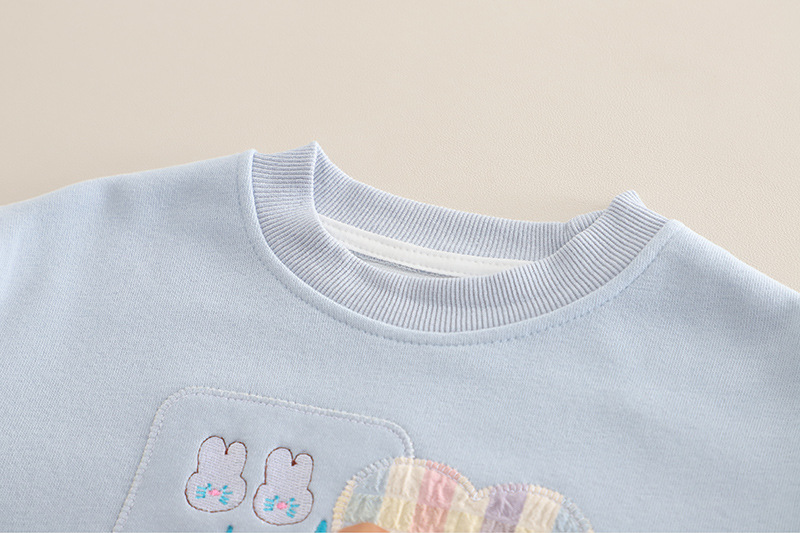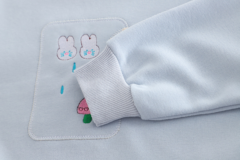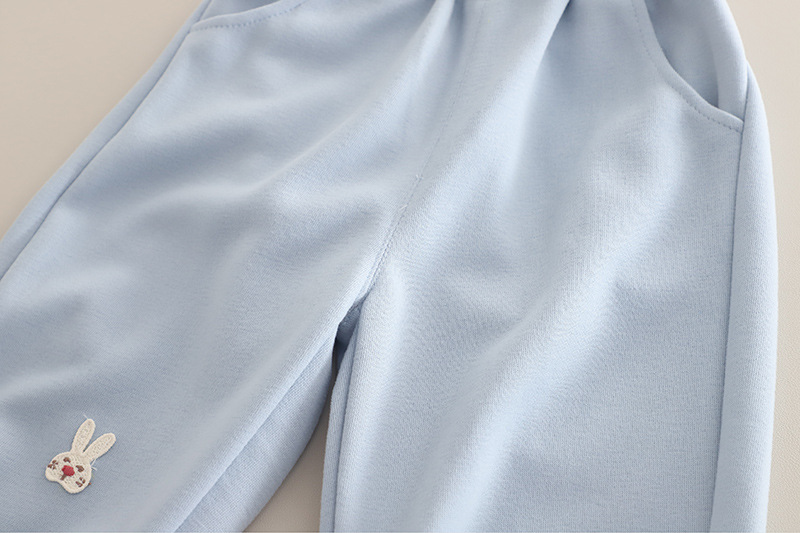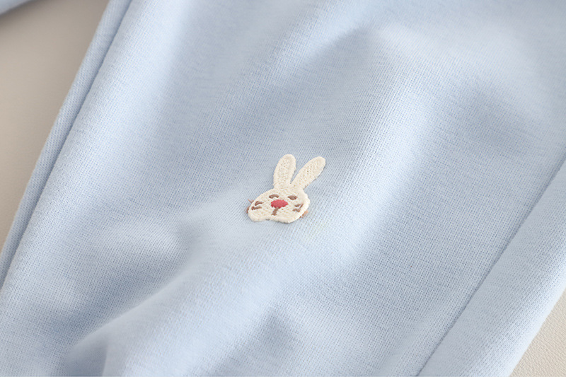 – Панталон със свободна кройка и ластик в талията. Крачолите завършват с ластични маншети, украсени с 3D апликации на малки зайчета за допълнителен чар.