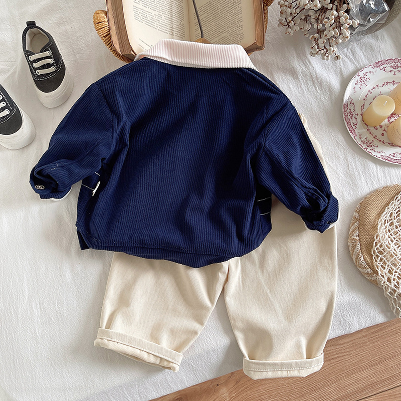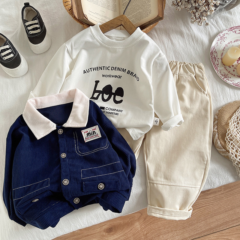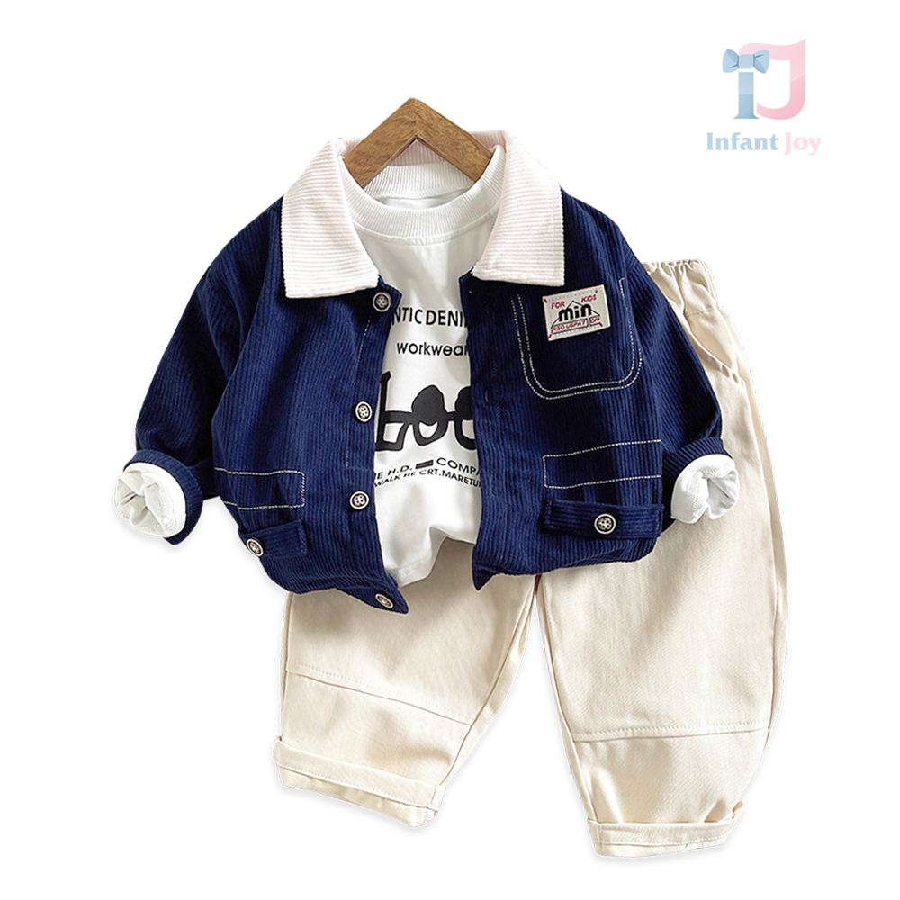 Комплект от Джинсов Бомбър, Блузка с Щампи и Панталон Mini League Navy – 3 части