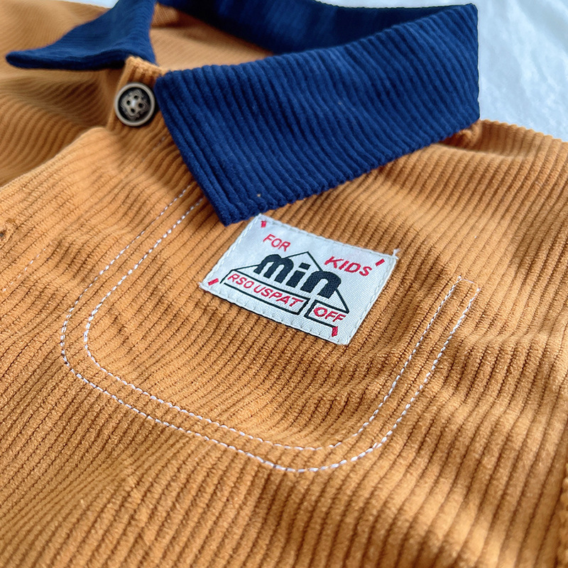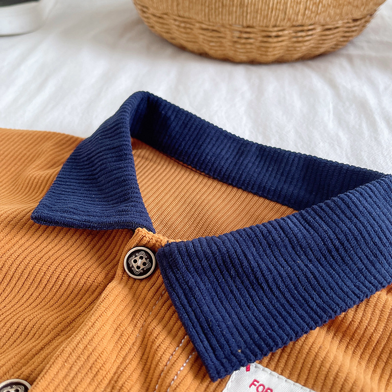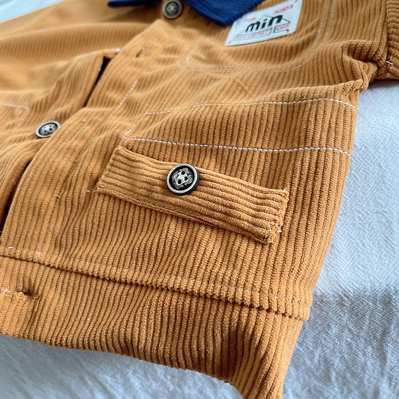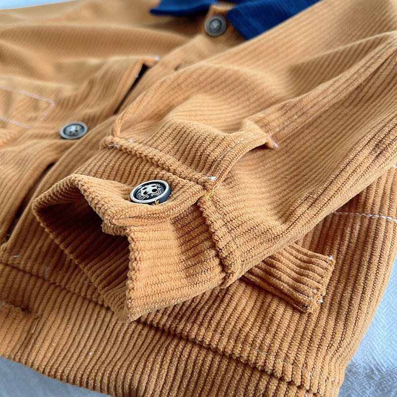– Джинсово яке-бомбър в цвят горчица с контрастна тъмносиня яка, закопчаване посредством копчета, два предни джоба и малка бродирана емблема от едната страна.