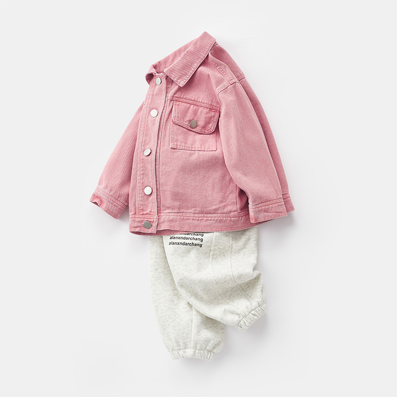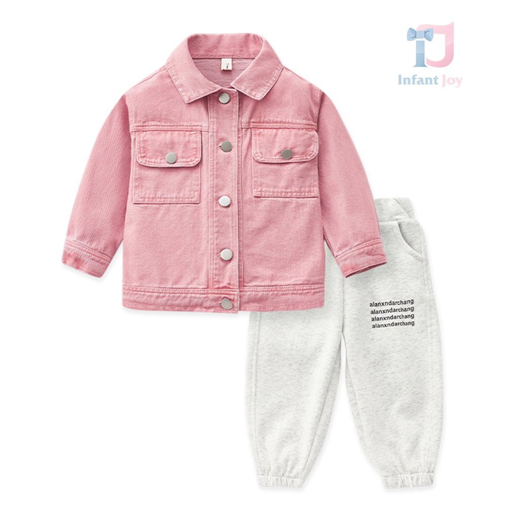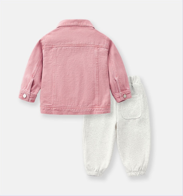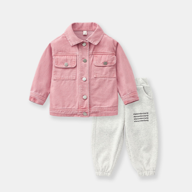 Комплект от Дънково Яке и Спортен Панталон с Бродерии Pastel Pink Manifesto - 2 части