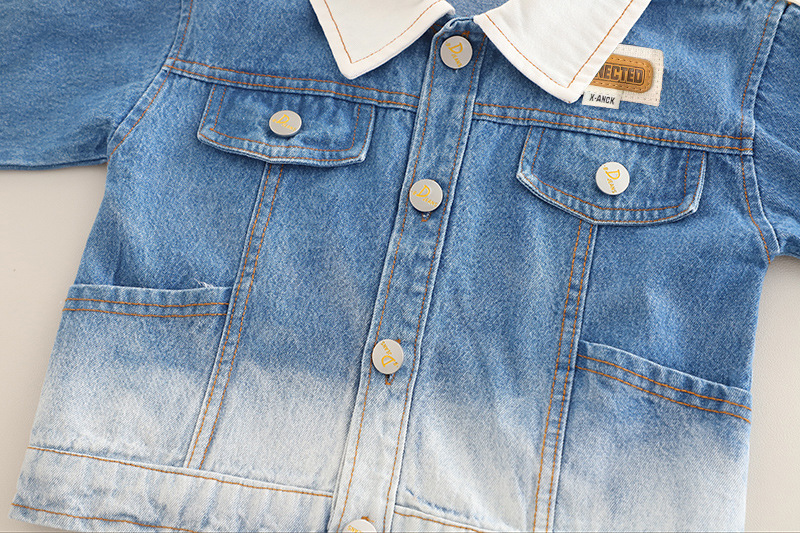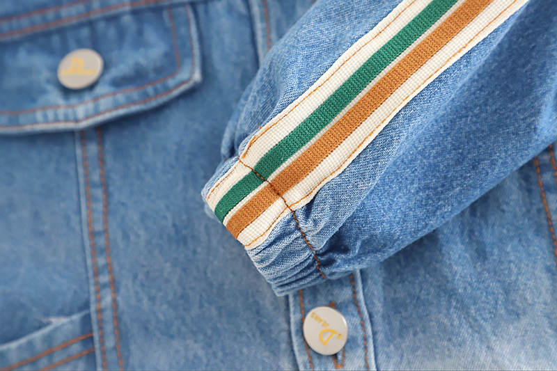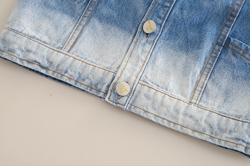 – Яке тип бомбър от деним с модерна преливаща избелена основа и контрастна бяла яка. Детайли като метални копчета, декоративни джобове с капаци и навити ръкави с ластик придават завършен вид. Малка емблема на гърдите добавя нотка улична естетика.