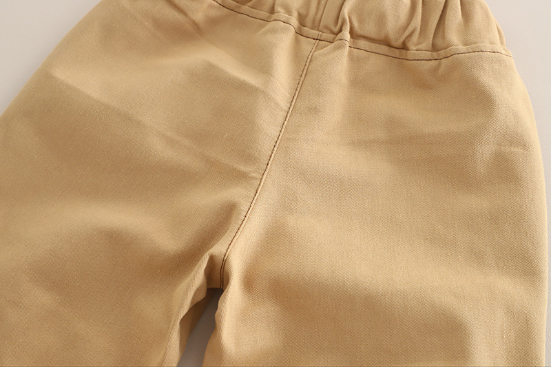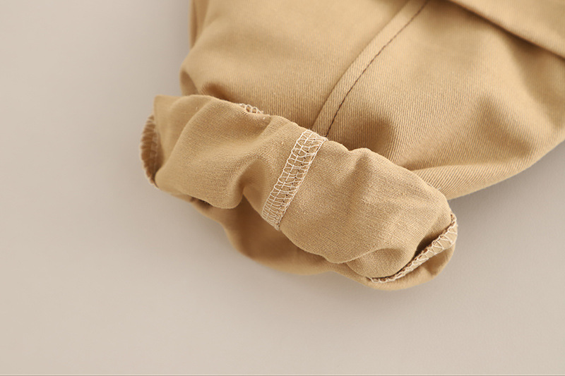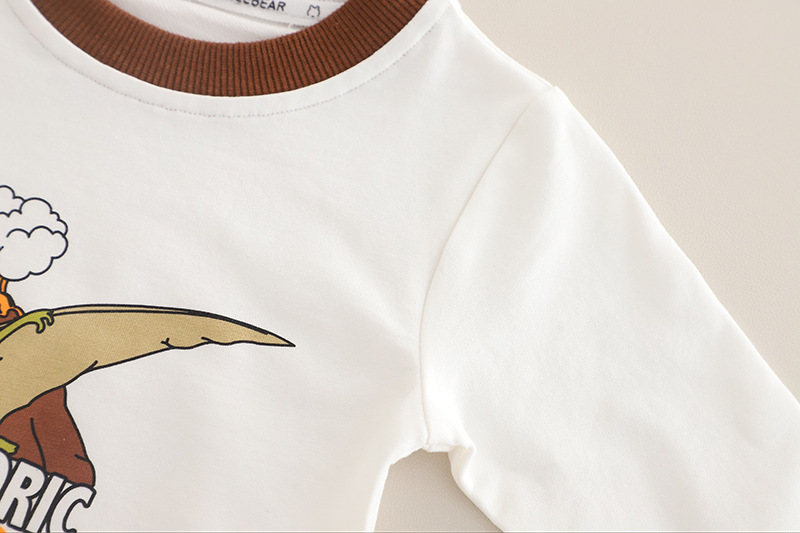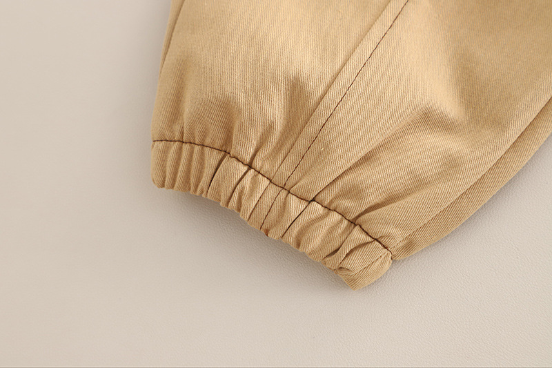 – Панталон в пясъчен бежов цвят, в свободна кройка с широк ластик в талията и глезените. Акцентът е 3D апликация на динозавър отстрани – релефна и игрива, с цветен детайл за настроение.