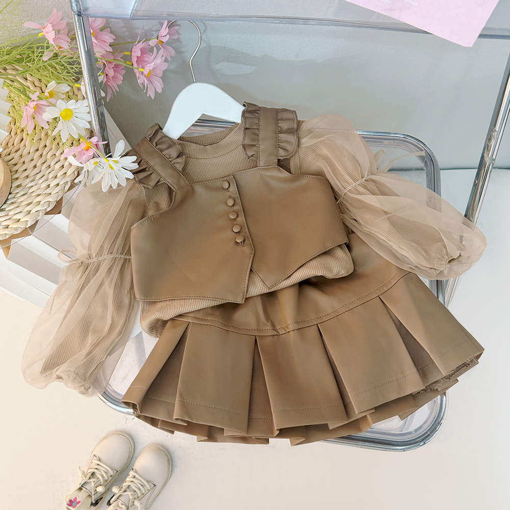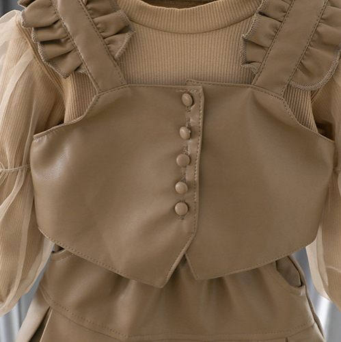 Комплект от Еко Кожа с Топ, Пола и Рипс Блузка с Тюл Chocolate Shake - 3 части