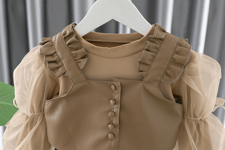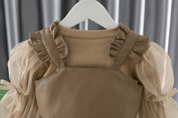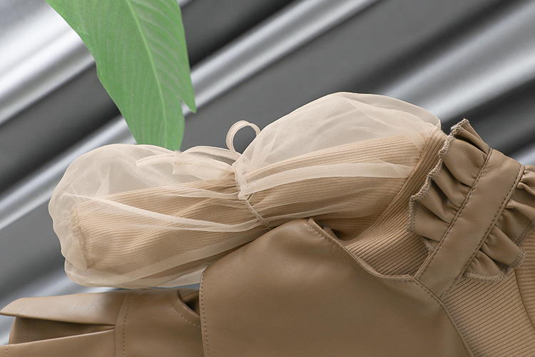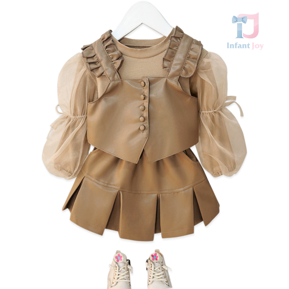 Комплект от Еко Кожа с Топ, Пола и Рипс Блузка с Тюл Chocolate Shake – 3 части
