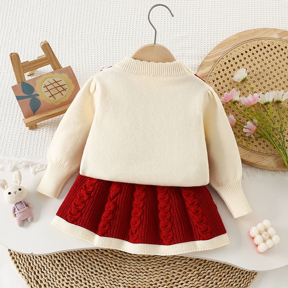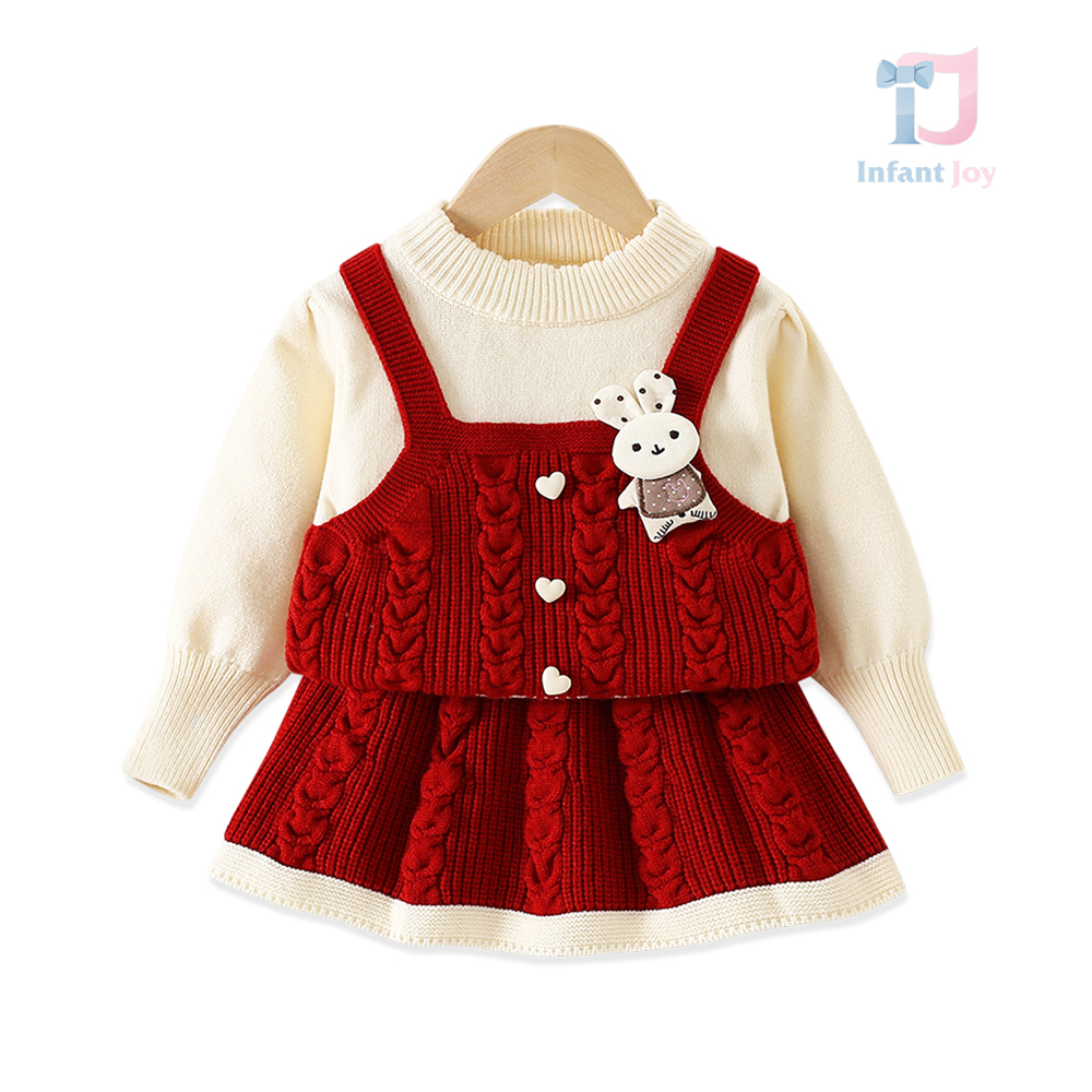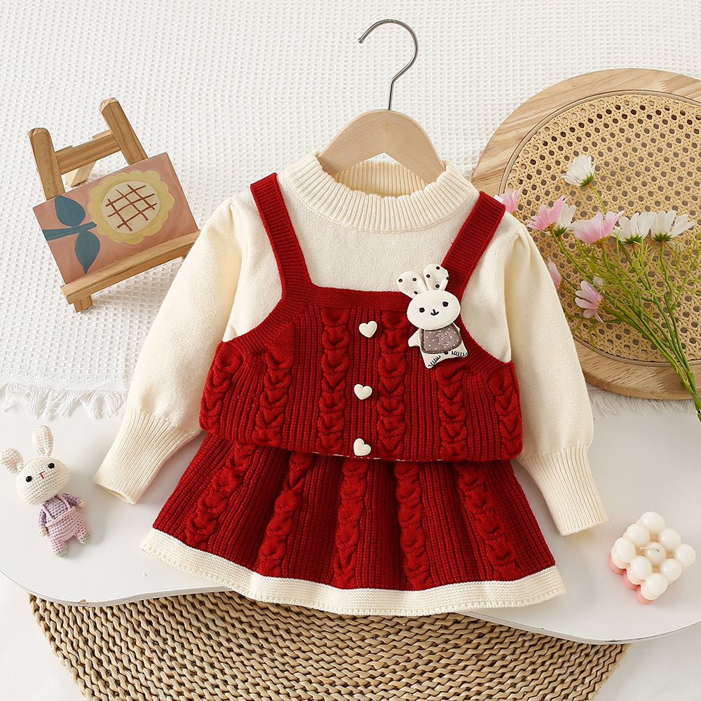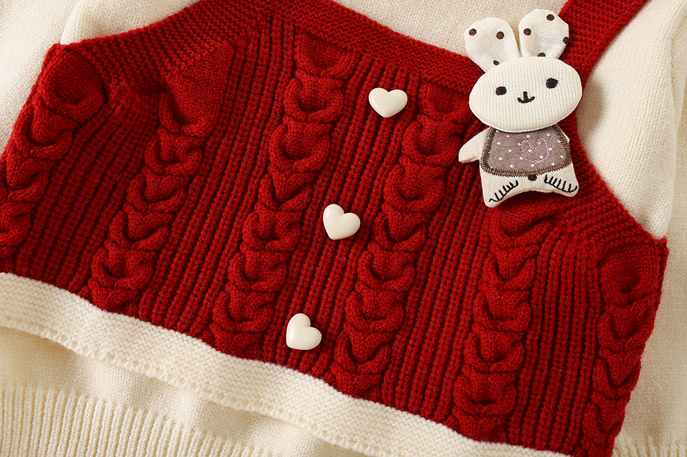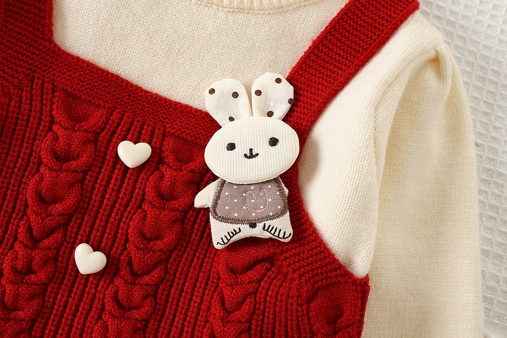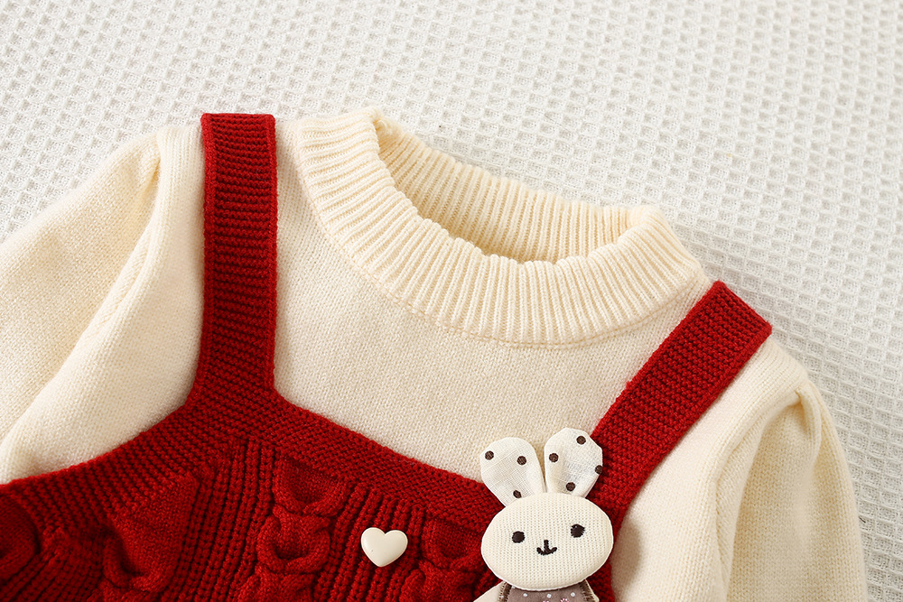 Комплект от Плетиво с Пуловер, Пришит Топ, Плисирана Пола и 3Д Елемент I Love Bunny – 3 части