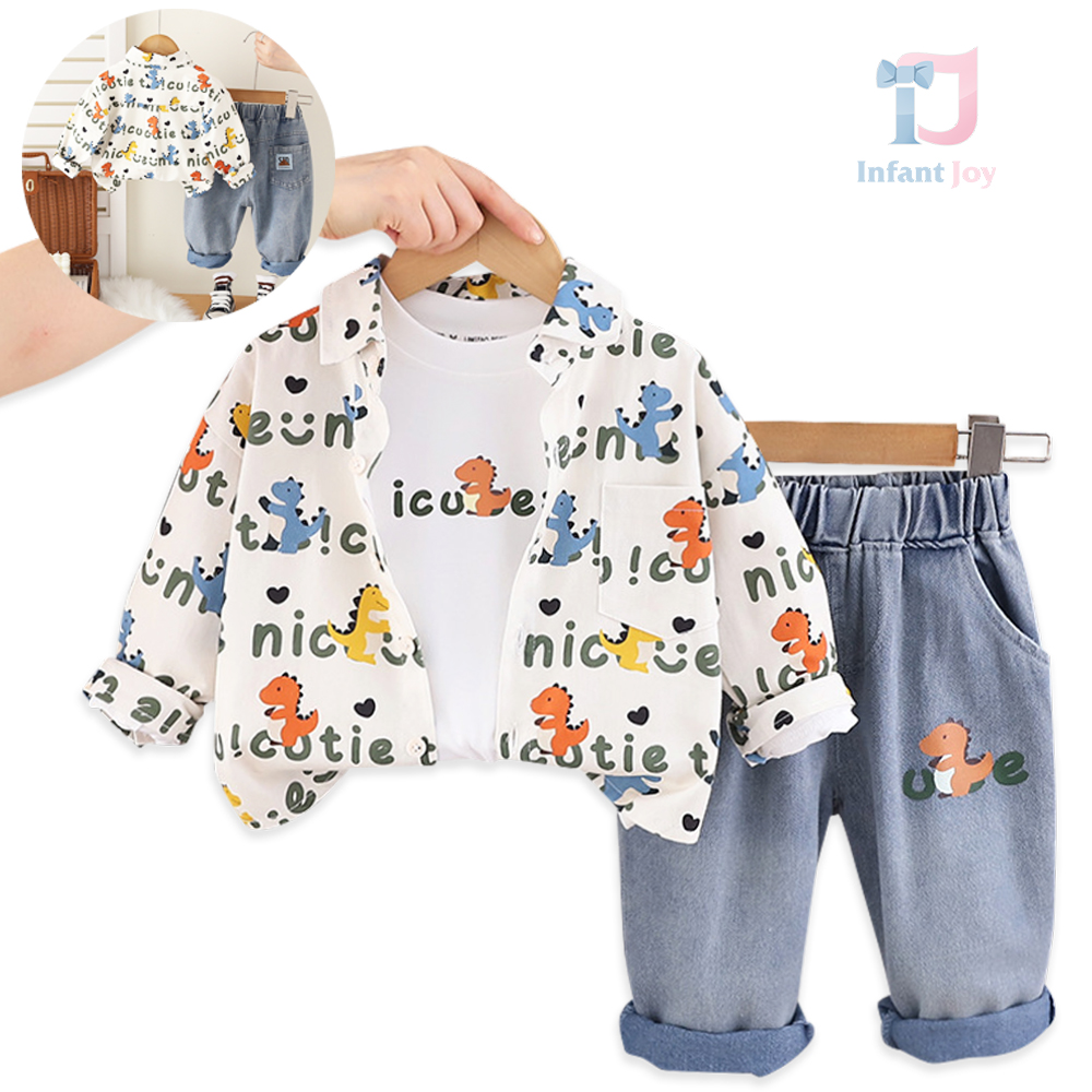 Комплект от Риза с Ефектен Десен, Блузка и Дънков Панталон Nice Dinos - 3 части
