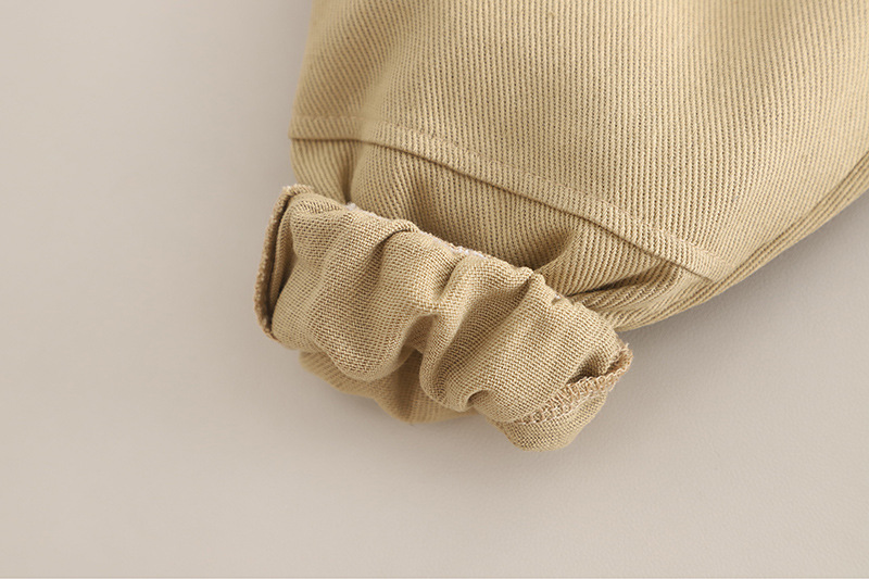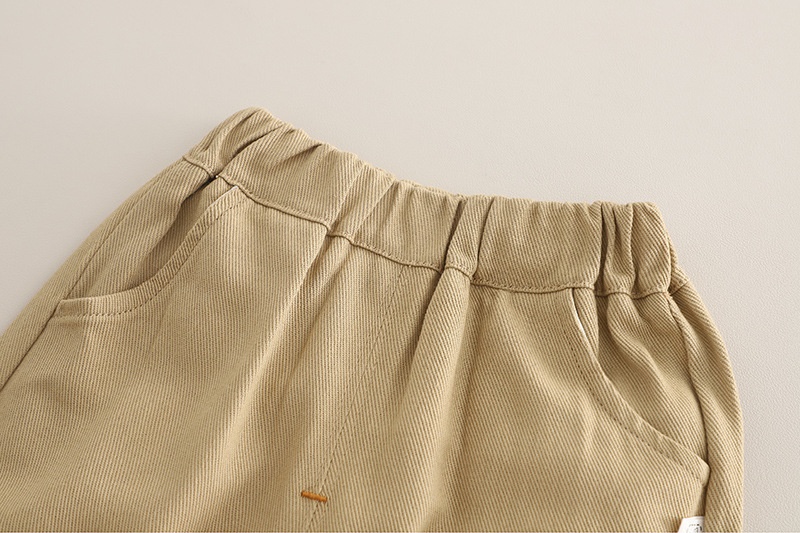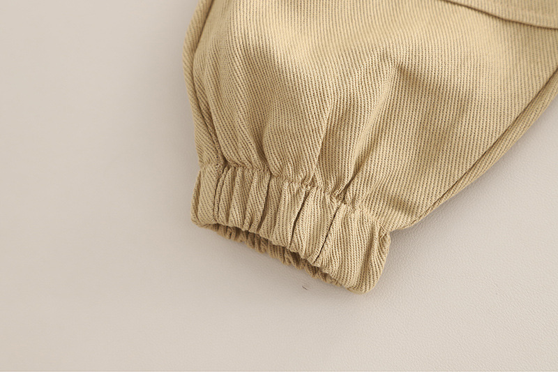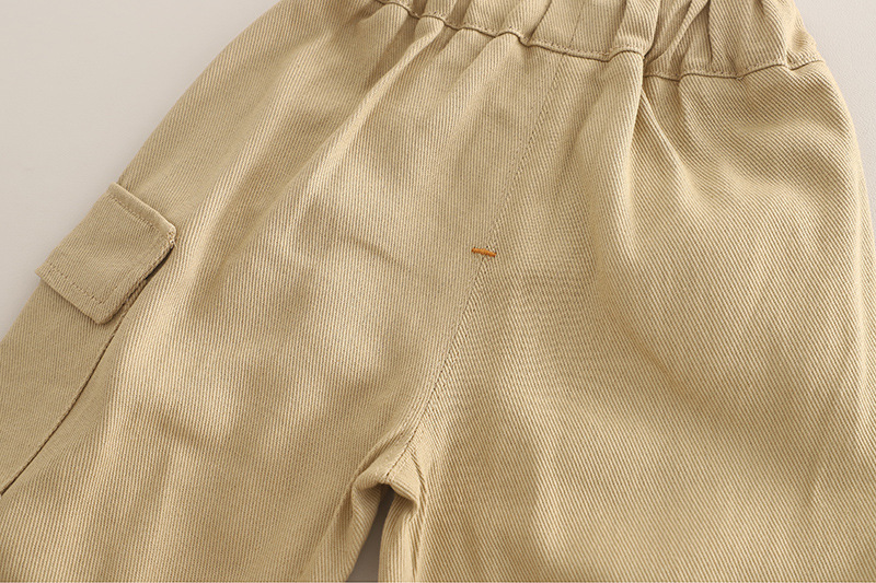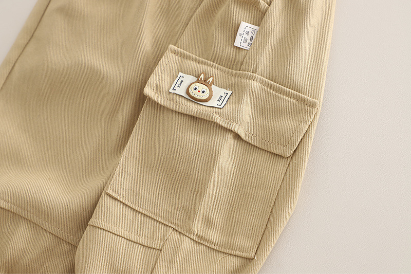 – Панталон тип карго в пясъчно бежово, с еластична талия и глезени, джобове отстрани и декоративна емблема с лице на животинче. Материята е плътна, но мека, подходяща за ежедневна употреба.