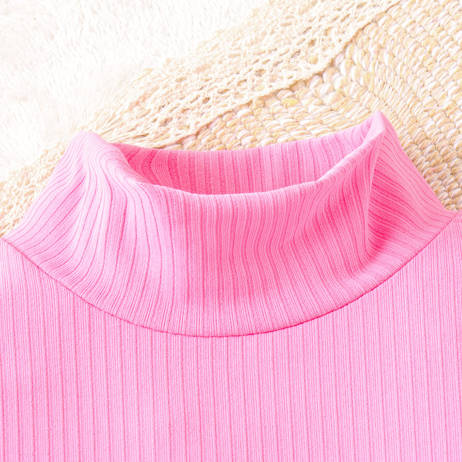 – Поло блузка от рипс в ярко розов цвят, с дълъг ръкав и висока яка. Материята е еластична и мека, прилягаща по тялото и подходяща както за самостоятелно носене, така и за съчетаване със суичъри или жилетки.
