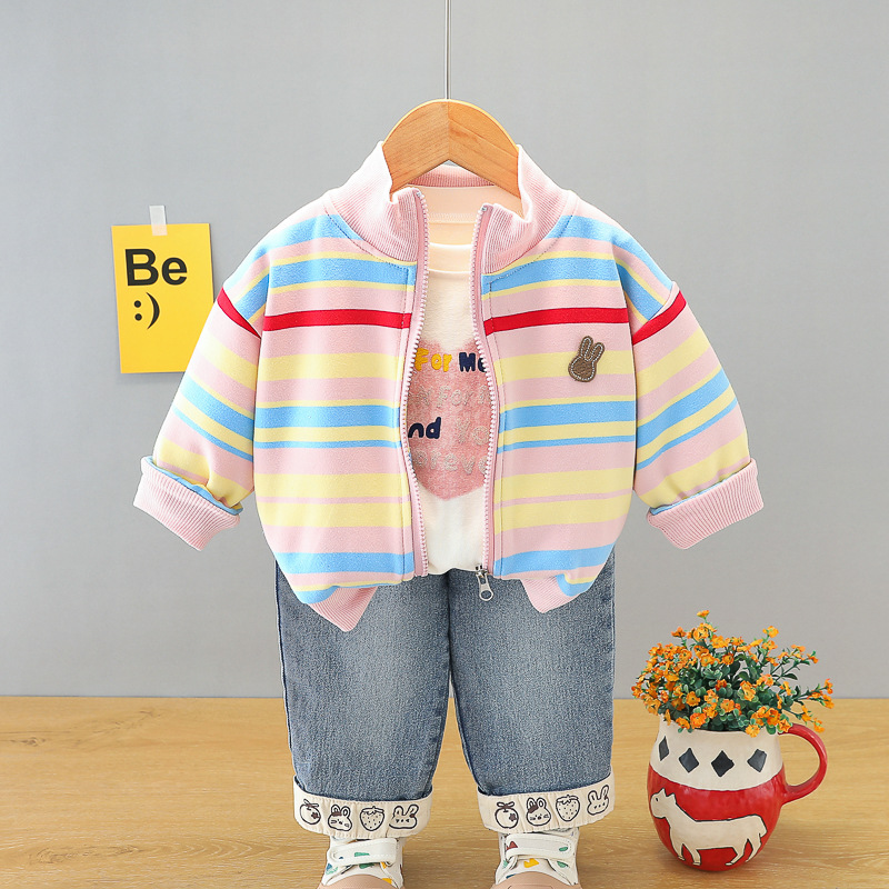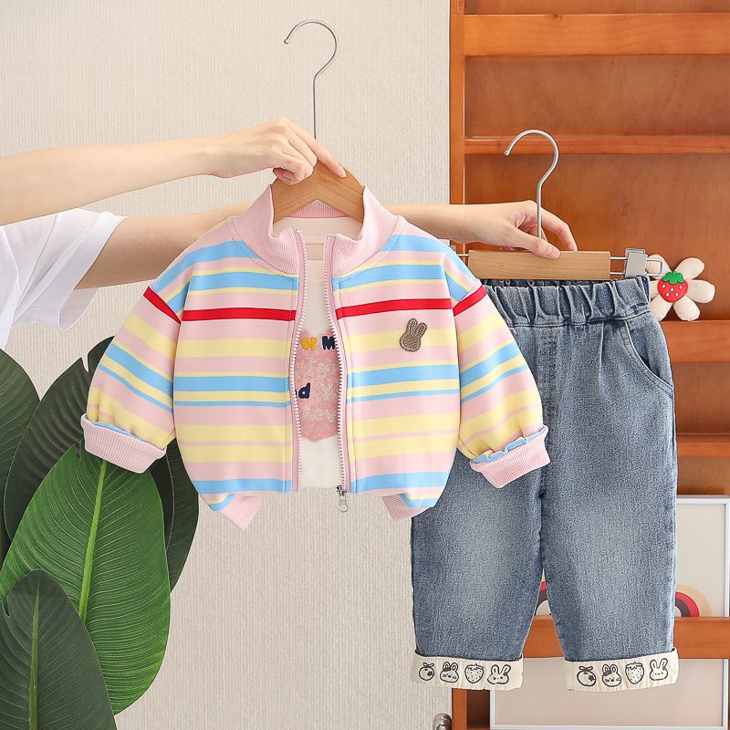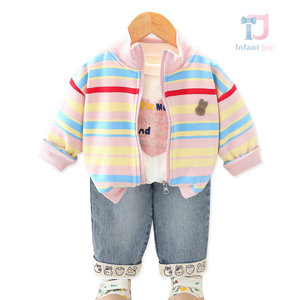 Комплект от Суитшърт с Висока Яка, Блузка и Деним Панталон Happy Color – 3 части