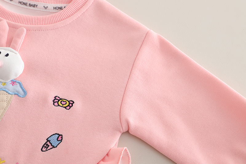 Комплект от Суитшърт с Къдри, Бродерии и Деним Панталон Ice Cream Bunny Pink -2 части