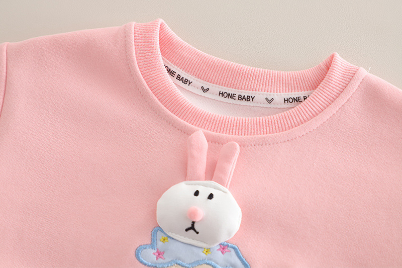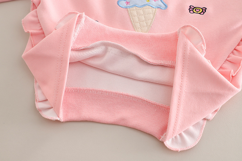 • Комплект от Суитшърт с Къдри, Бродерии и Деним Панталон Ice Cream Bunny Pink -2 части