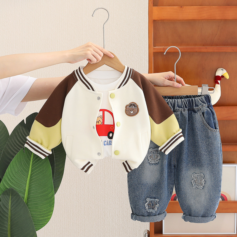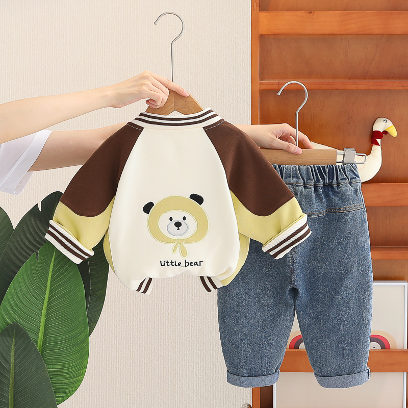 Комплект от Яке/Бомбър, Блузка и Дънков Панталон с Ефектни Декорации Beep & Bear – 3 части