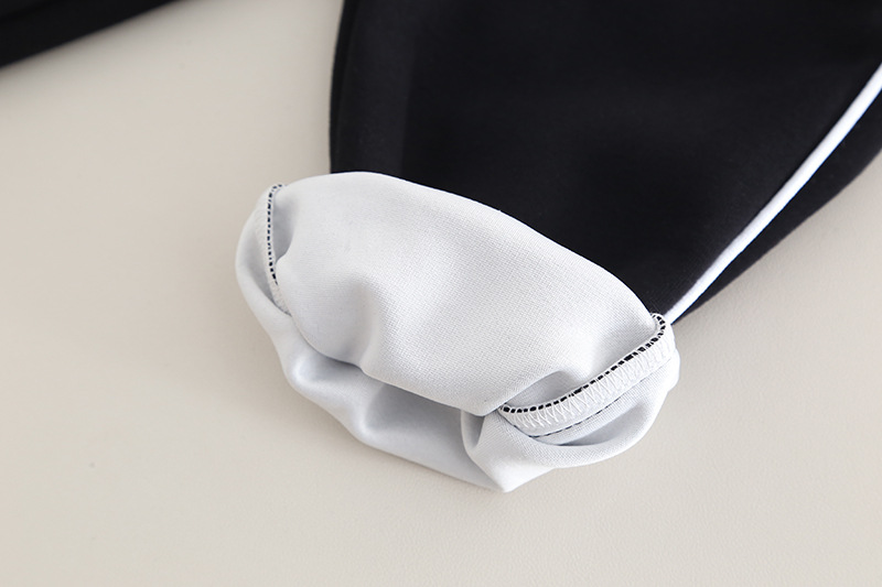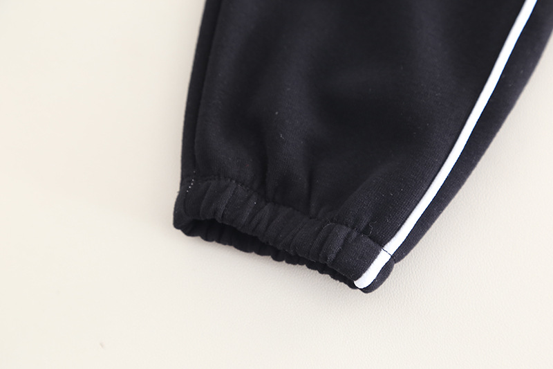 – Панталон в черно, с изчистена визия и ластик в талията и глезените. Отстрани има тънка черна линия, която визуално удължава силуета и придава спортно-елегантен вид.