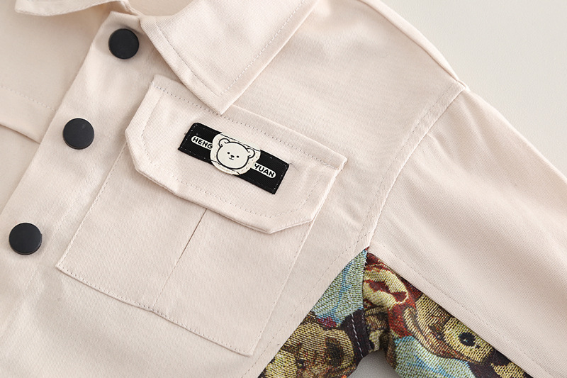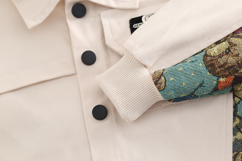– Яке с класическа яка и контрастен дизайн, изработено в цвят ванилия с цветен меланж от долната страна и вътрешната част на ръкавите – текстура, наподобяваща тапицерия с принт на мечета. Отпред е украсено с малка нашивка на мече, а гърбът е с голям надпис “BEAR” в смесена типография. Закопчава се посредством бели тик‑так копчета. Подгъвът и маншетите са рипсени за максимален комфорт.