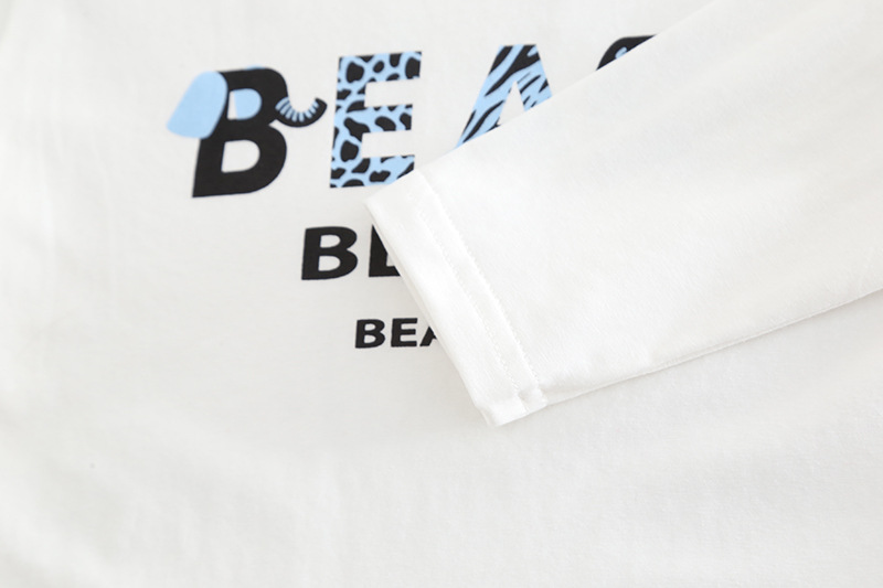 – Блузка от памук в бял цвят, с минималистична щампа “BEAR” и модерна графика в синьо и черно. Дизайнът пасва перфектно под якето и може да се носи и самостоятелно.