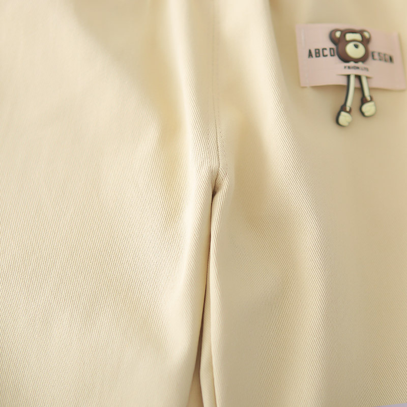 – Яке с класическа яка в бежов цвят от миксирани платове – деним и плетиво, декорирано с щампи на мечета и надписи „Happy Little Bear“. Истинският акцент е 3D апликацията на мече, облечено с мини пуловер и шапка – изработено от текстил с обемна текстура, която придава уникален характер. Моделът се закопчава с тик‑так копчета и има преден джоб.