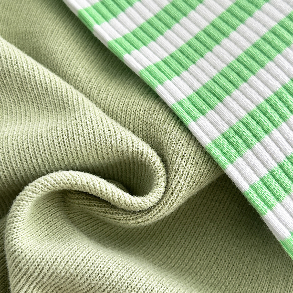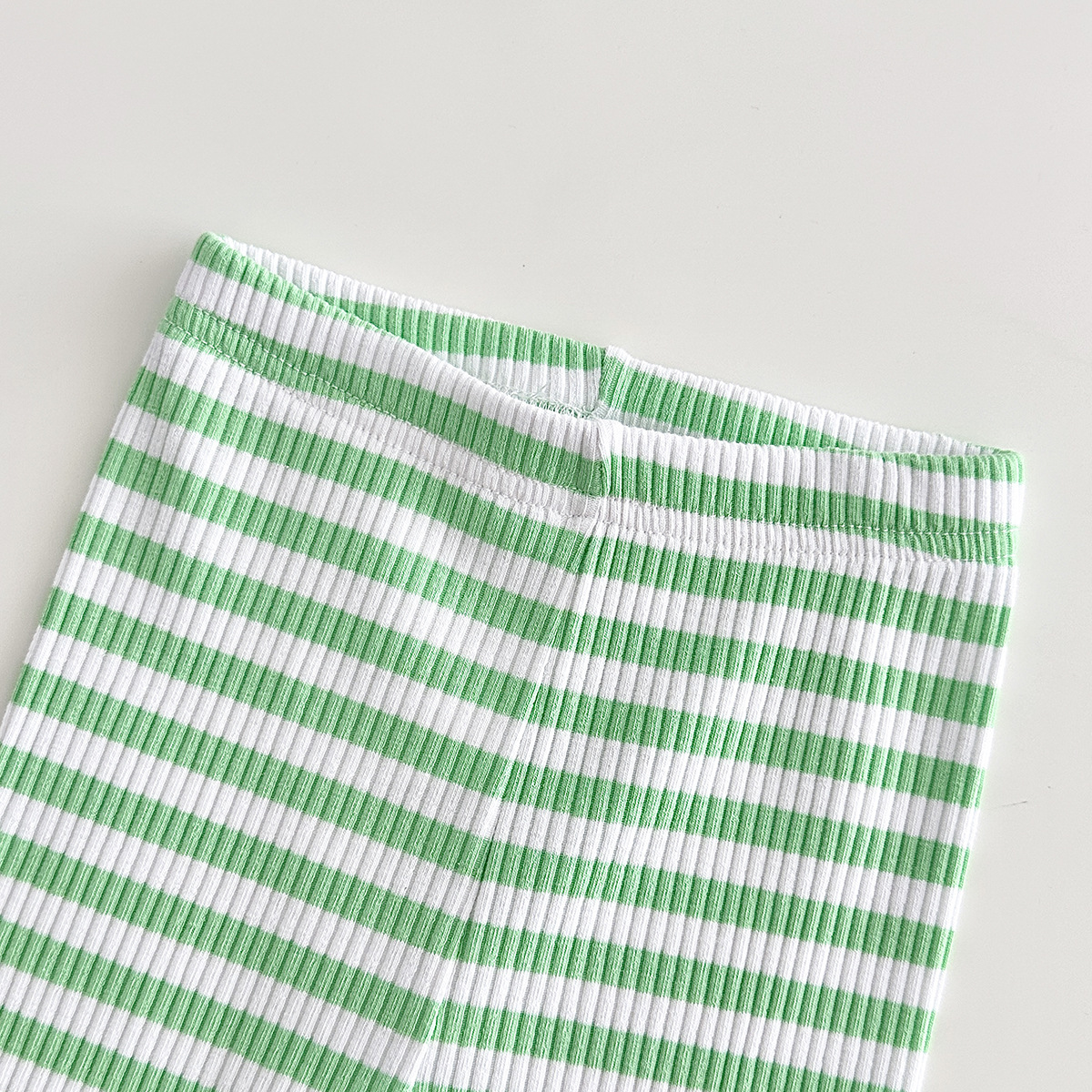 -Клин от рипс в стилен десен на зелено-бели райета; материята е еластична и приятна на допир, осигуряваща свобода на движение и забавления без ограничение