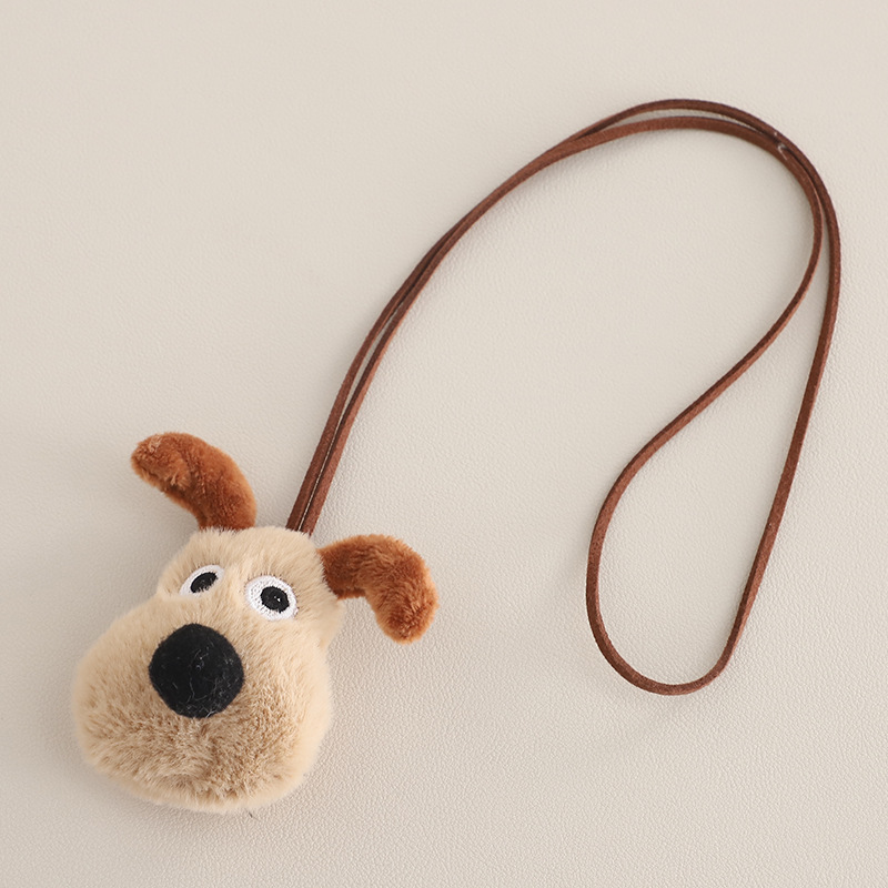 – Висулка, играчка – плюшена глава на кученце с вълнена нишка, която добавя забавен 3D детайл.
