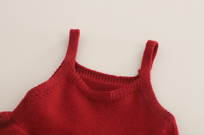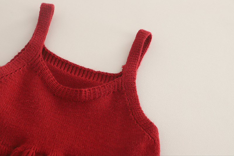 – Плетен топ в наситено бургундско с тънки презрамки и разкроена долна част от рипс плетка – ефект „две в едно“ и игрив силует.