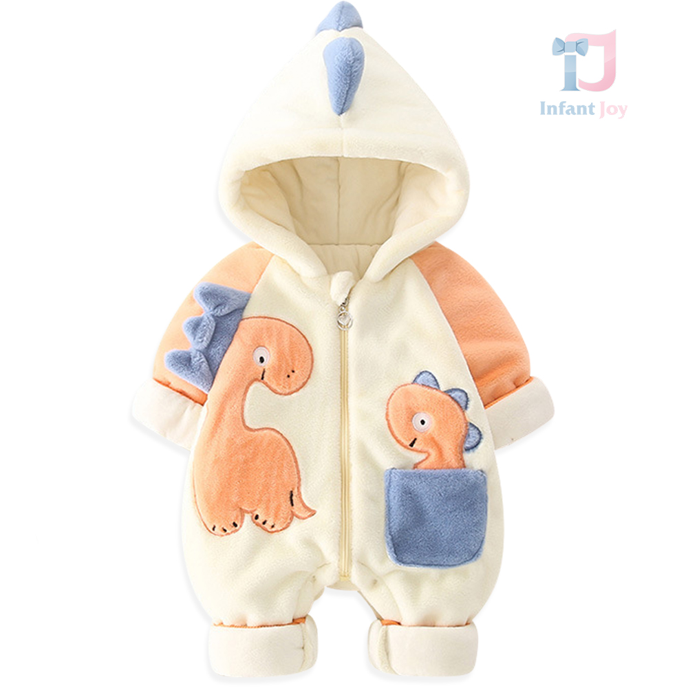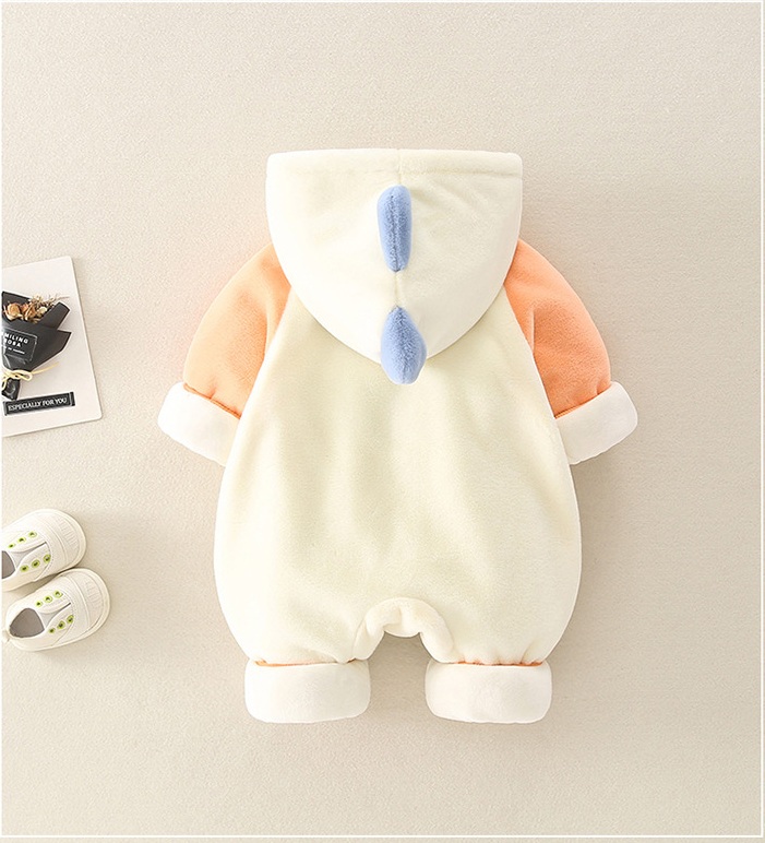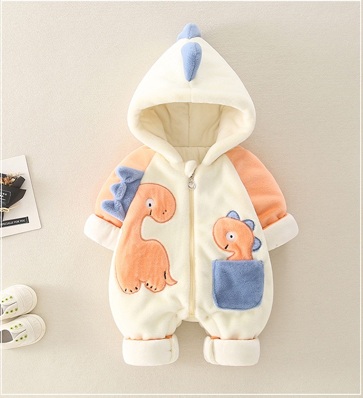 🦕 Пухкав бебешки гащеризон с динозавърски дизайн – сладък, топъл и удобен!