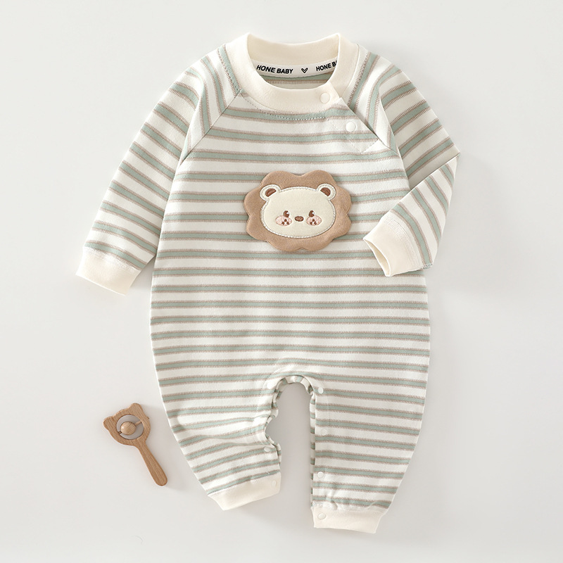 🤍 Прекрасен ромпър в нежно сиво-зелено райе – комфорт и стил в едно.