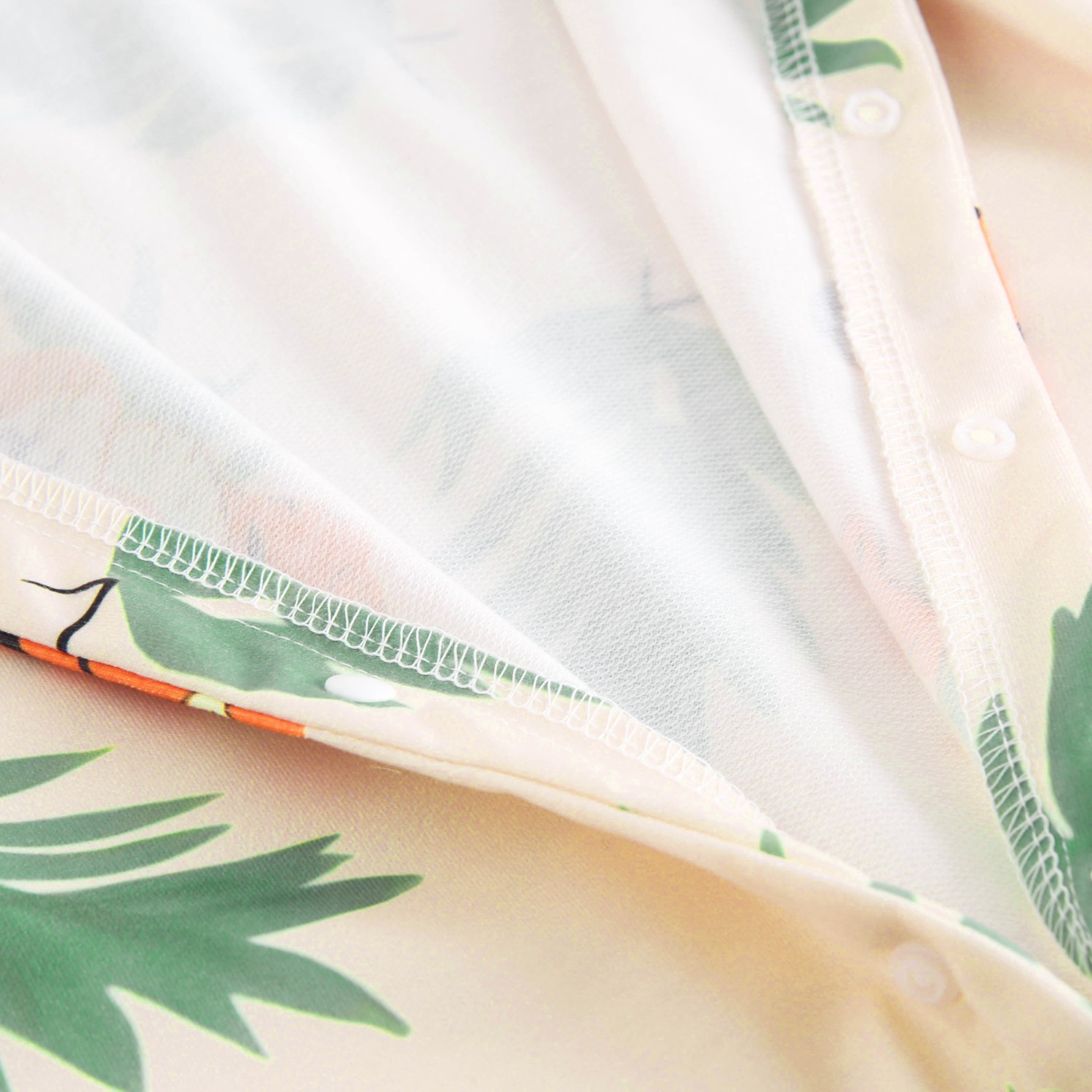 😊 Изработен от висококачествена мека материя с едноцветна основа в бежов нюанс и десен на усмихнати тигърчета и големи тропически листа.
