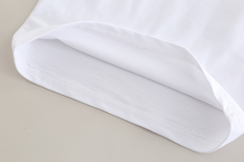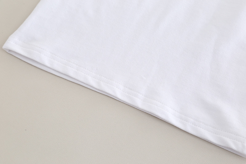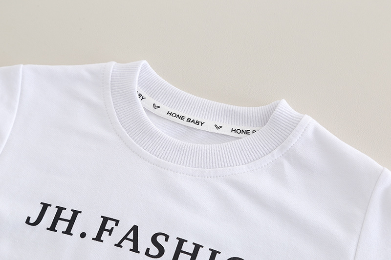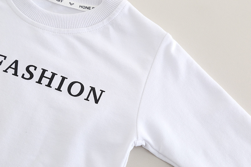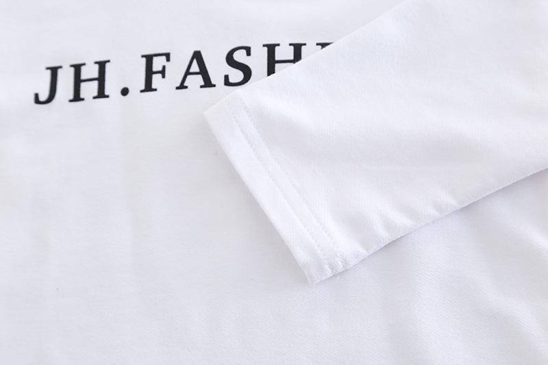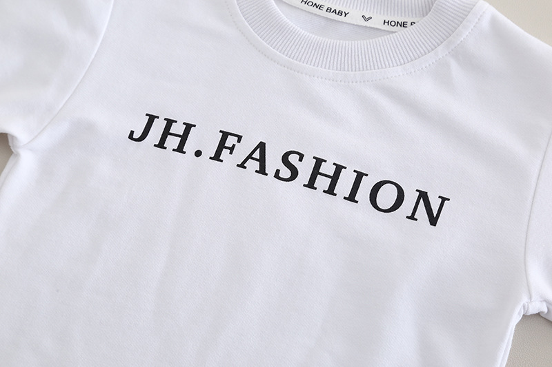 – Бяла блуза с къс ръкав и надпис „FASHION“ в черно – класически контрастен акцент, който наднича под горната част.