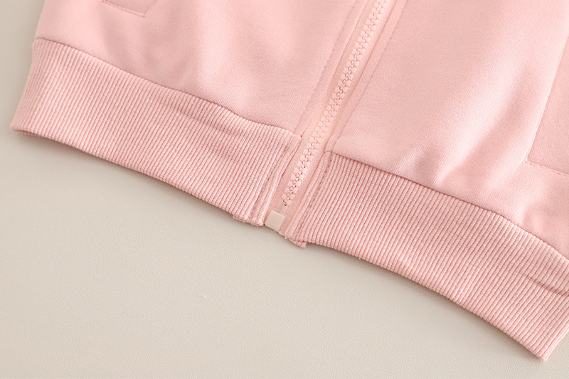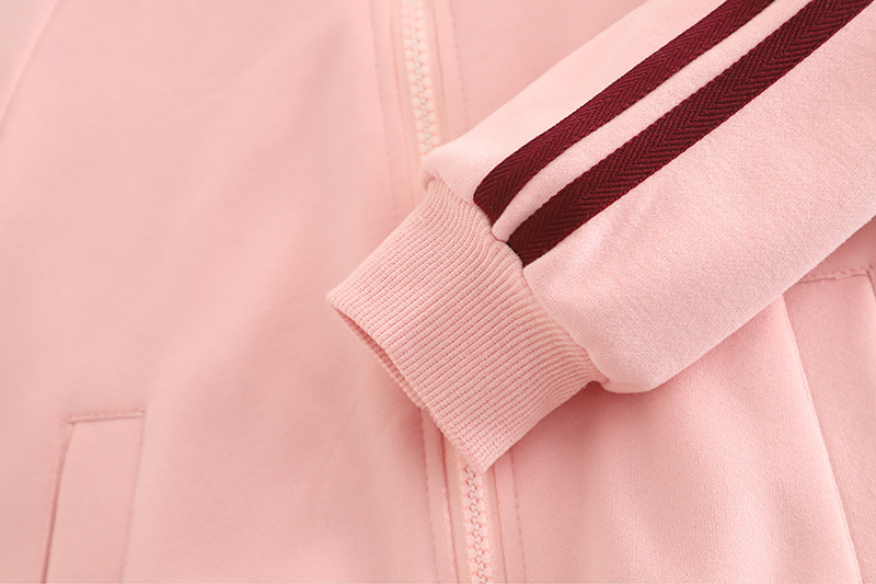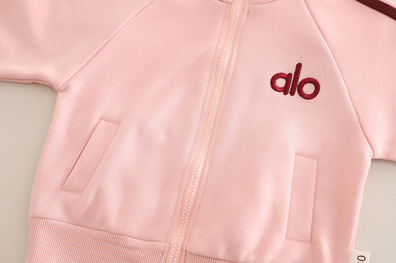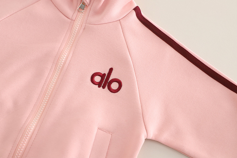 – Суитшърт-бомбер от висококачествен памук в нежнорозово с висока яка и цял цип. Контрастни тъмночервени кантове по реглан ръкавите, два предни джоба и ластичен подгъв за комфортно прилягане. Малко червено лого “alo” на гърдите.
