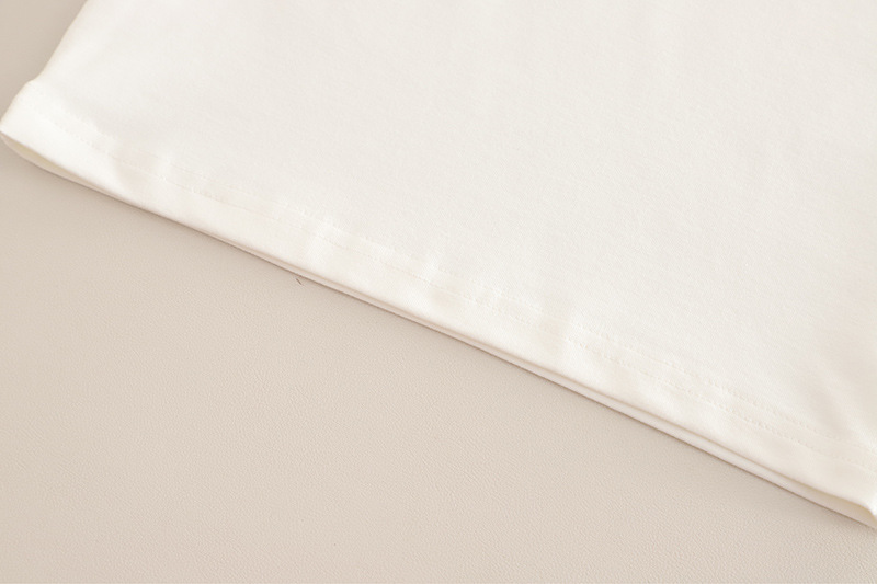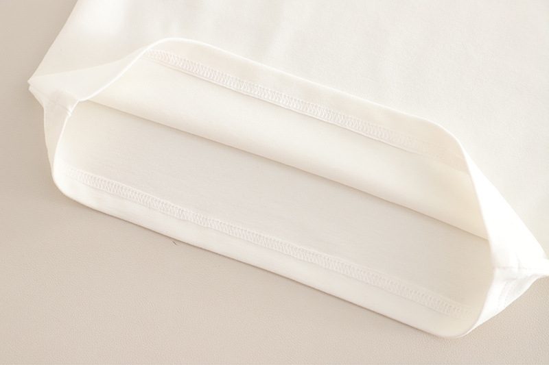 – Блузка в бяло от мек памучен плат с обло деколте и лек удължен подгъв. Централен принт в тъмночервено за свеж акцент.