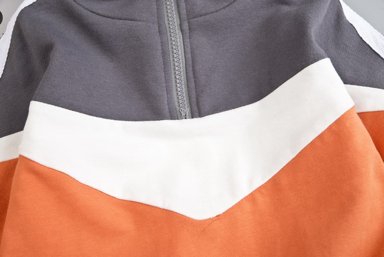 -Худи с висока яка, качулка и частичен цип, изработено от памук в графитено сиво, бяло и оранжево. Дизайнът е с V-образна геометрия отпред, която създава модерно и спортно излъчване. Яката може да се носи вдигната за защита от вятър или спусната за по-лежерна визия.