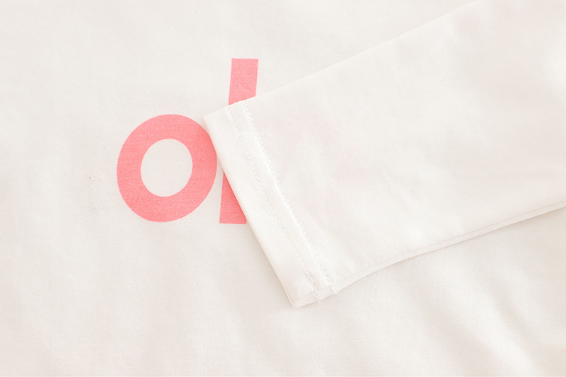 -Бяла блузка с дълъг ръкав и розова щампа „alo“, изработена от мек памук за допълнителен комфорт.