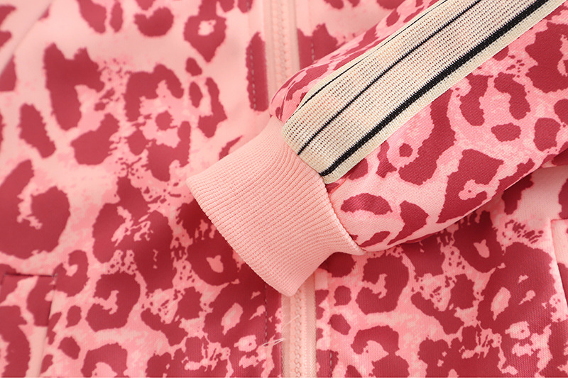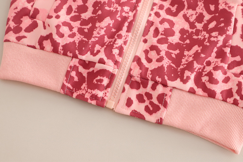 -Суитшърт с цип в розово и малиново, с леопардов принт, изработен от висококачествена и устойчива материя. Декориран е със спортни контрастни ленти по ръкавите и меко рипсено завършване на маншетите.