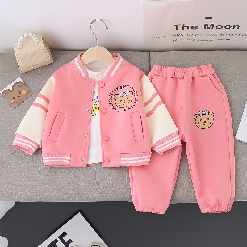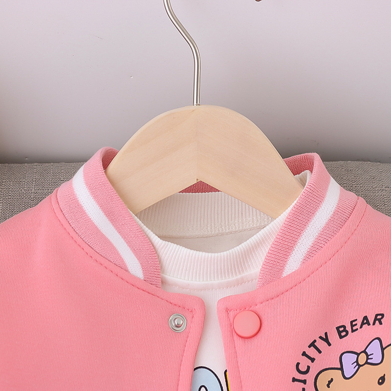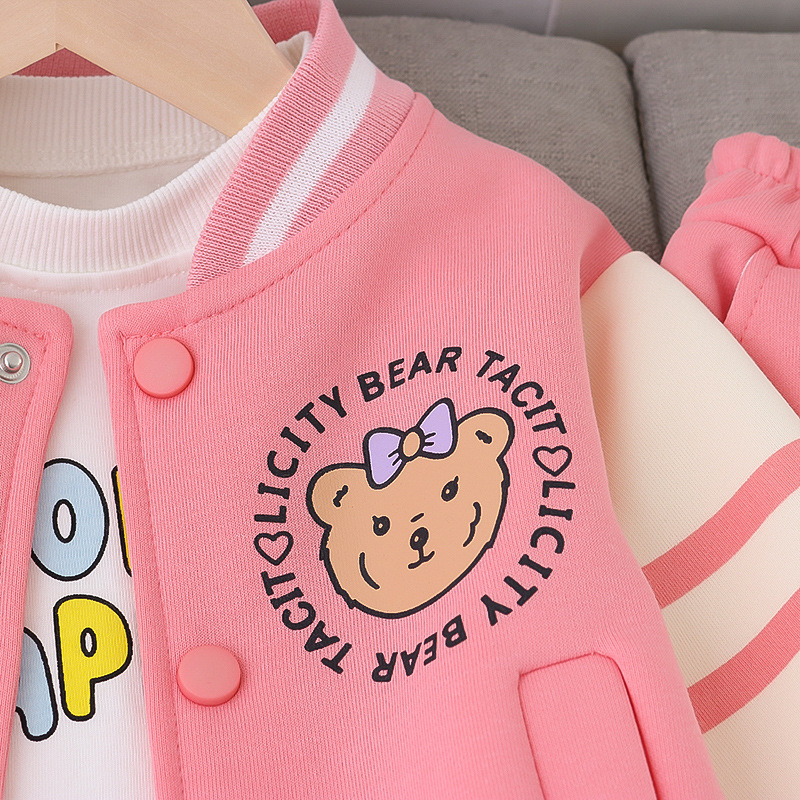 Спортен Комплект с Бомбър и Ефектни Кантове Licity Bear Pink – 3 части