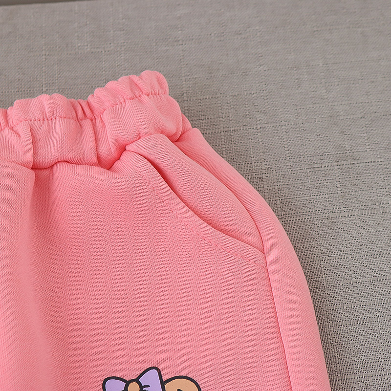 -Удобен панталон в тон с горницата с ластик на талията и глезена, две джобчета и щампа на мече за една сладурска визия.