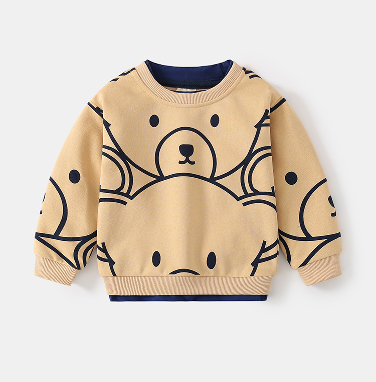 -Блузка в мек бежов нюанс с обло деколте, изработена от памук, декорирана със стилизиран принт на мечета в тъмносин контур. Модел с ластични маншети за свобода и удобство при носене.