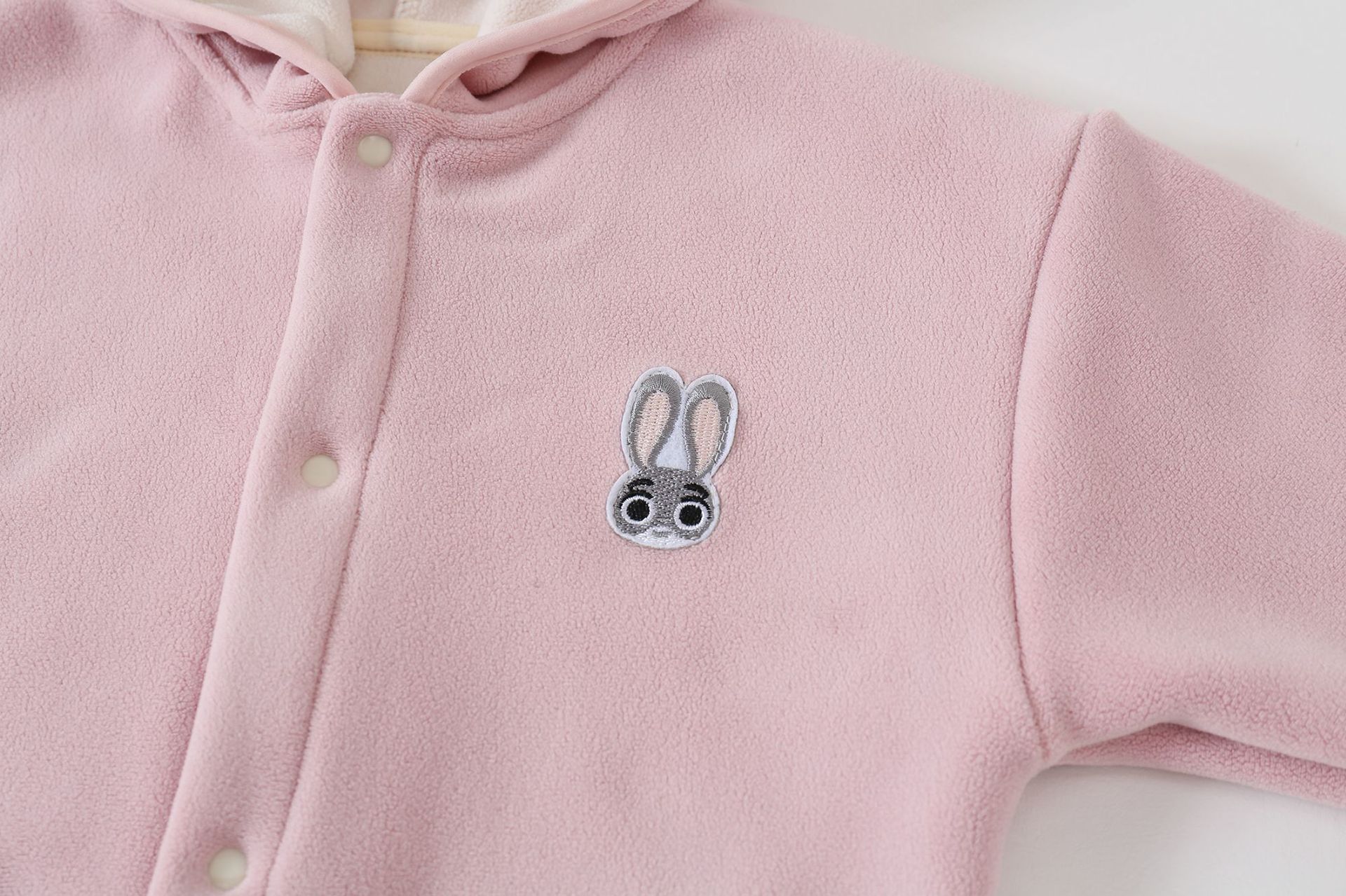 Поларен Суитшърт с Качулка, 3Д Ушички и Бродерии Sugar Bunny Pink