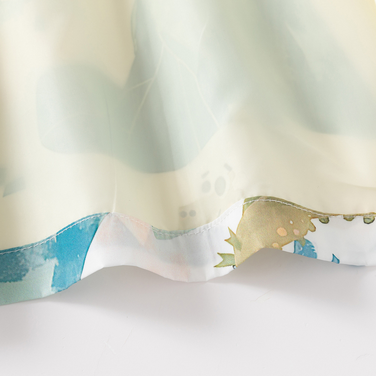 🐱🐉 Цялостен десен от динозаври и абстрактни планински форми в тюркоаз, маслено зелено и слънчево жълто – за модерен “пейзажен” ефект.