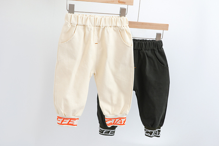 -Черен панталон от мек памук, завършващ с двуцветни ластици в долната част – комфортен и идеален за ежедневна игра.